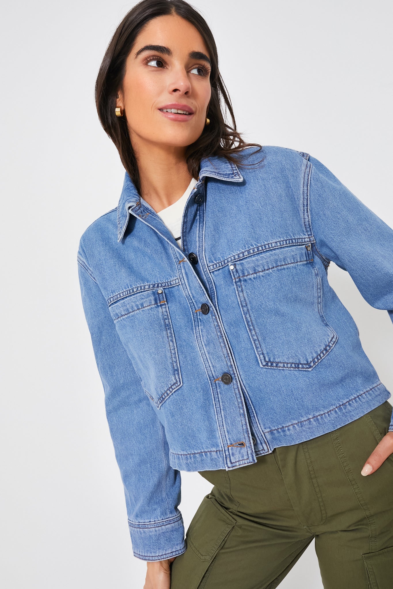 Indigo Corduroy Cropped Jasper Button Down