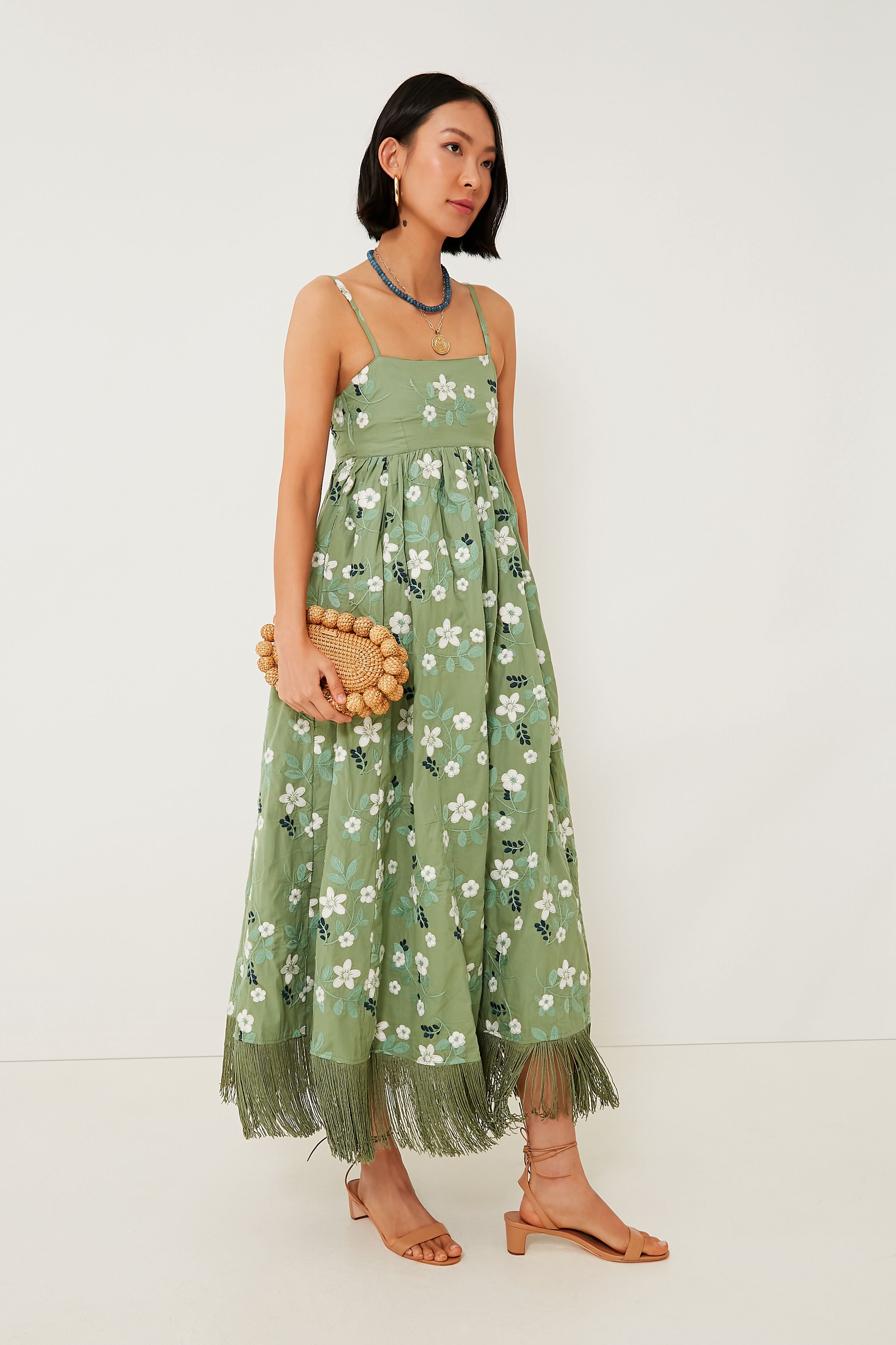 Green Gavin Fringe Midi Dress