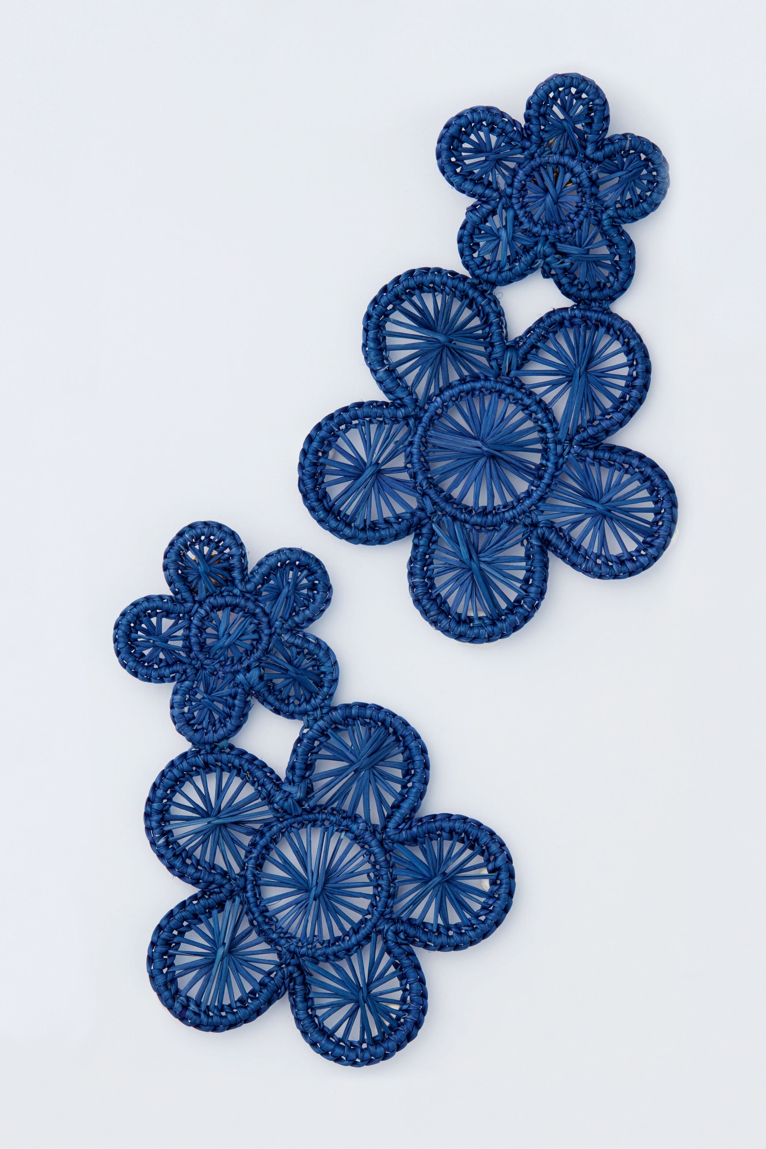 Newport Navy Rattan Bloom Earrings