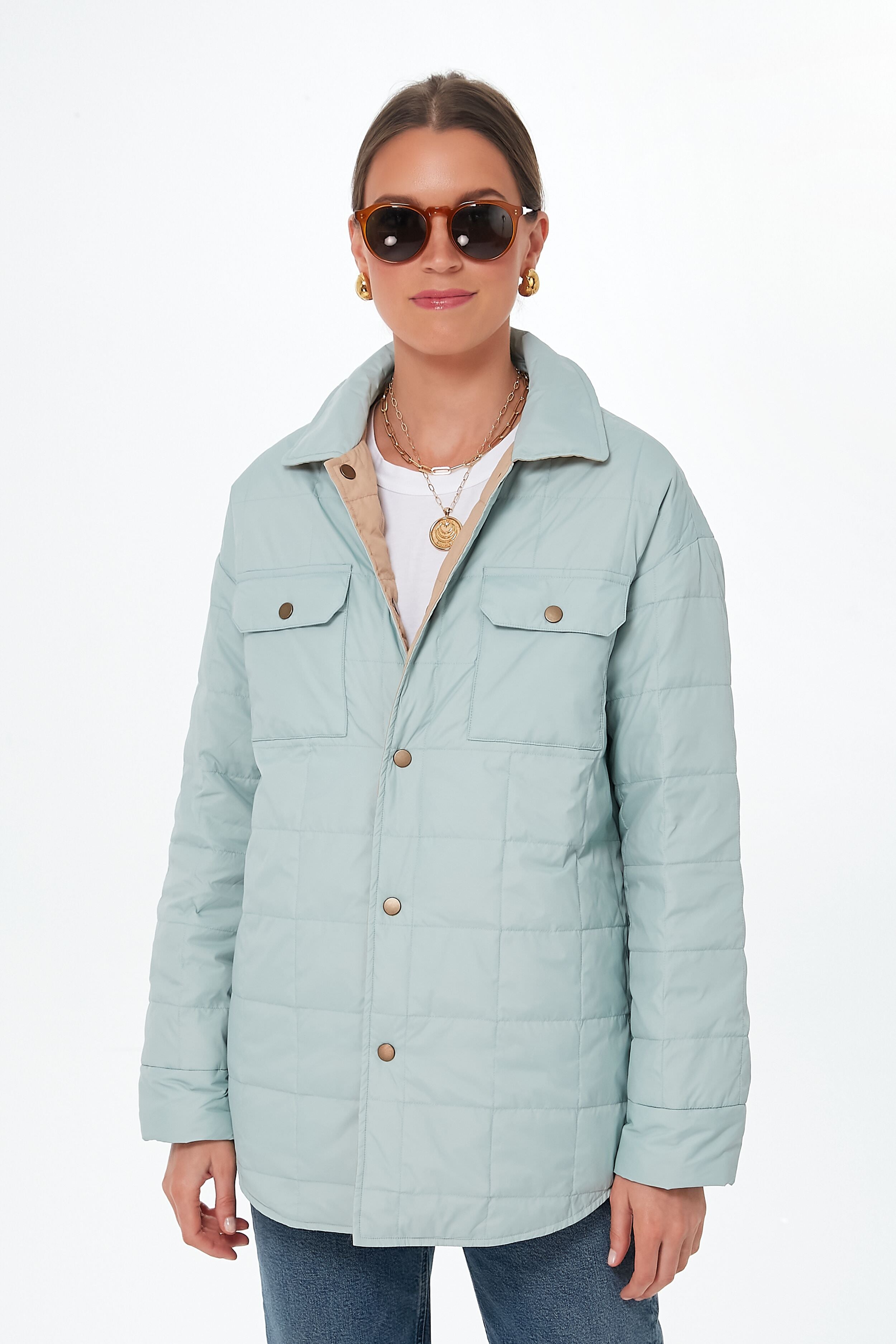 Bottle Green Puffed Sleeve Pressed Wool Coat