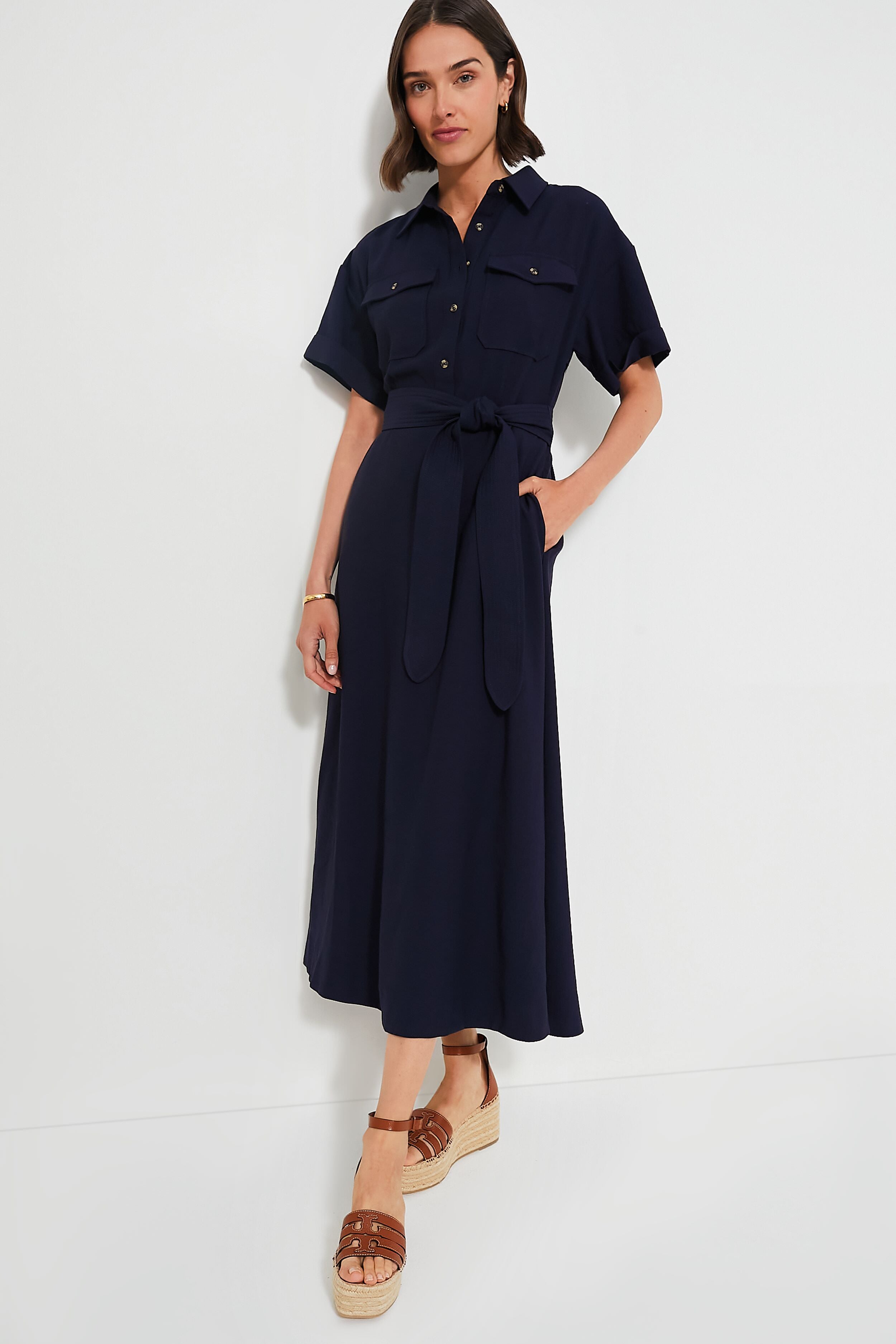 Navy Jeanetta Eyelet Short Sleeve Tunic Dress