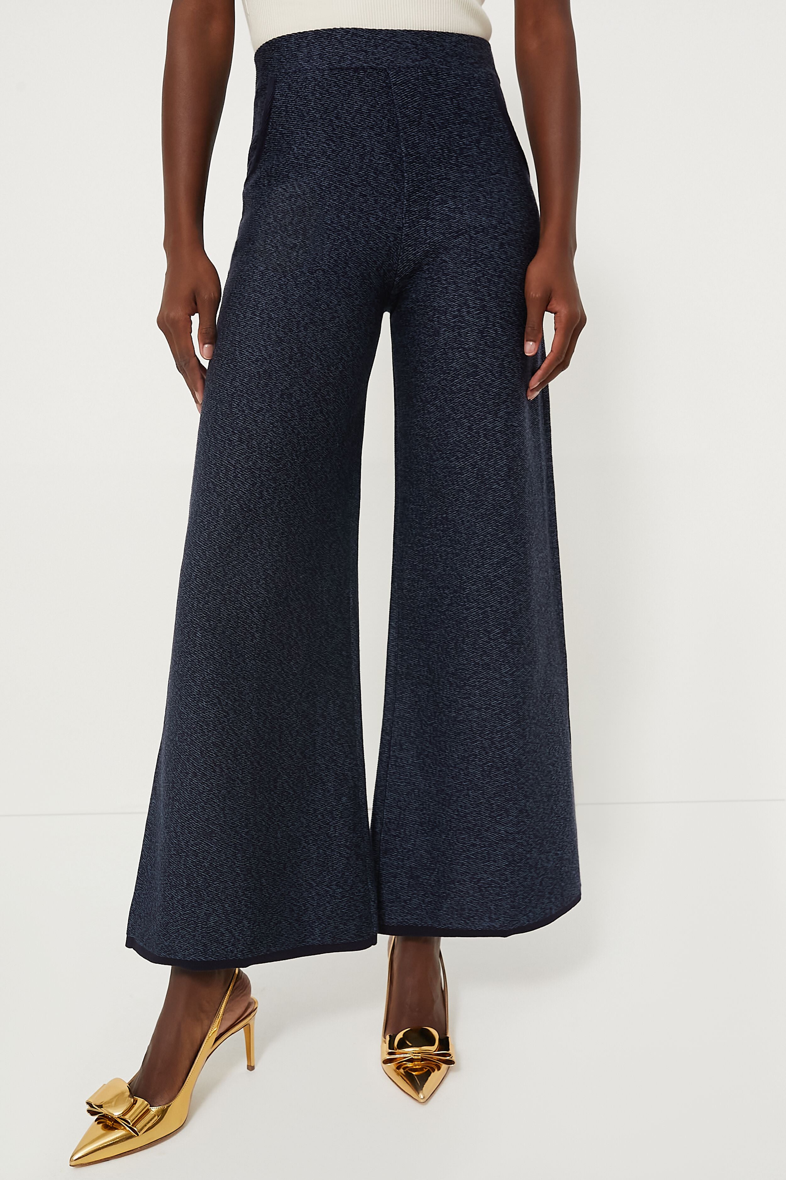 Navy Blue Denim Look Wideleg Trousers