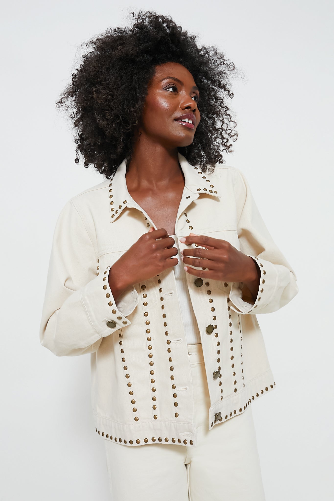 Natural The Studded Slouchy Jean Jacket