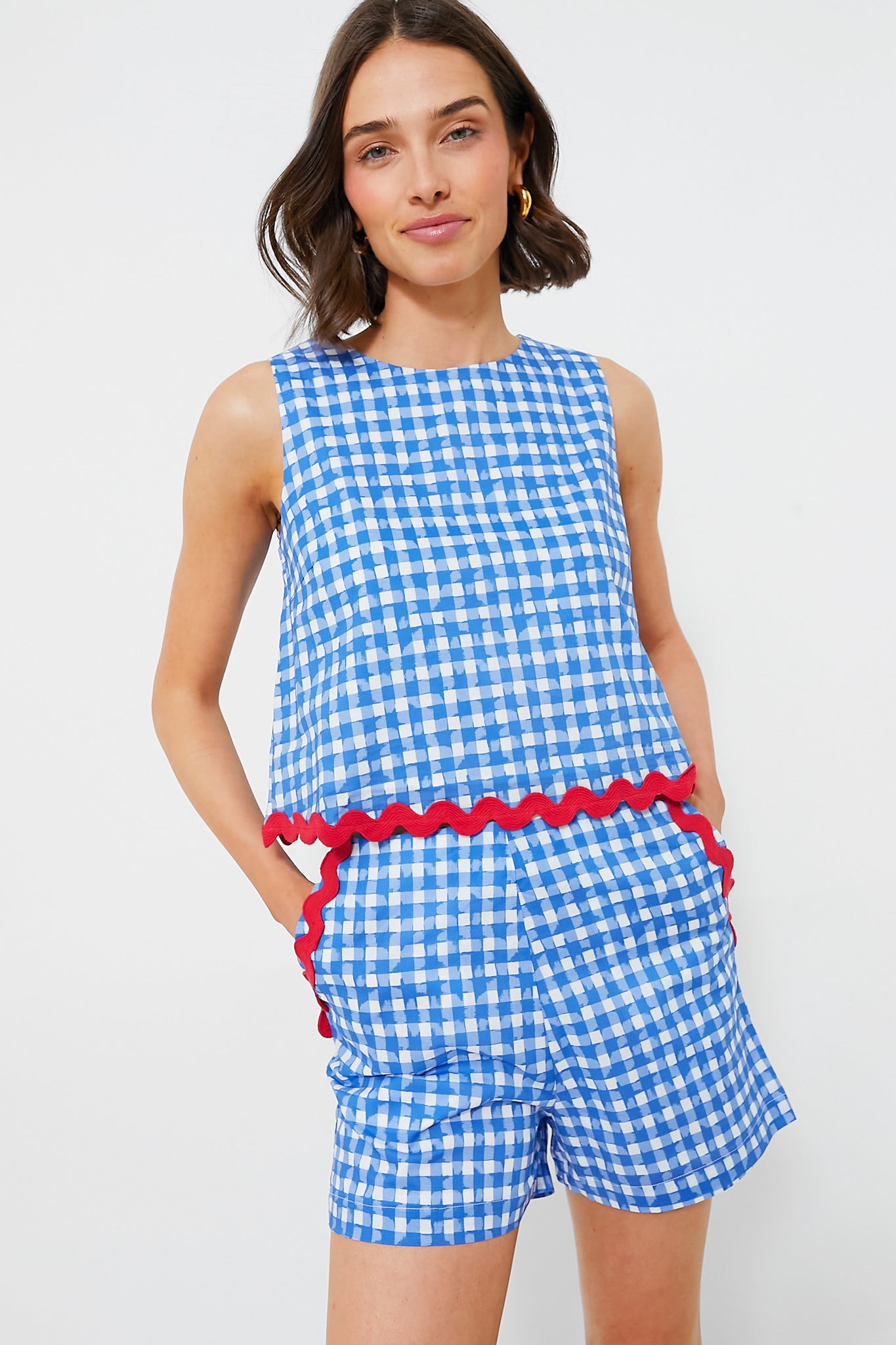 Blue Gingham Sleeveless Short Set