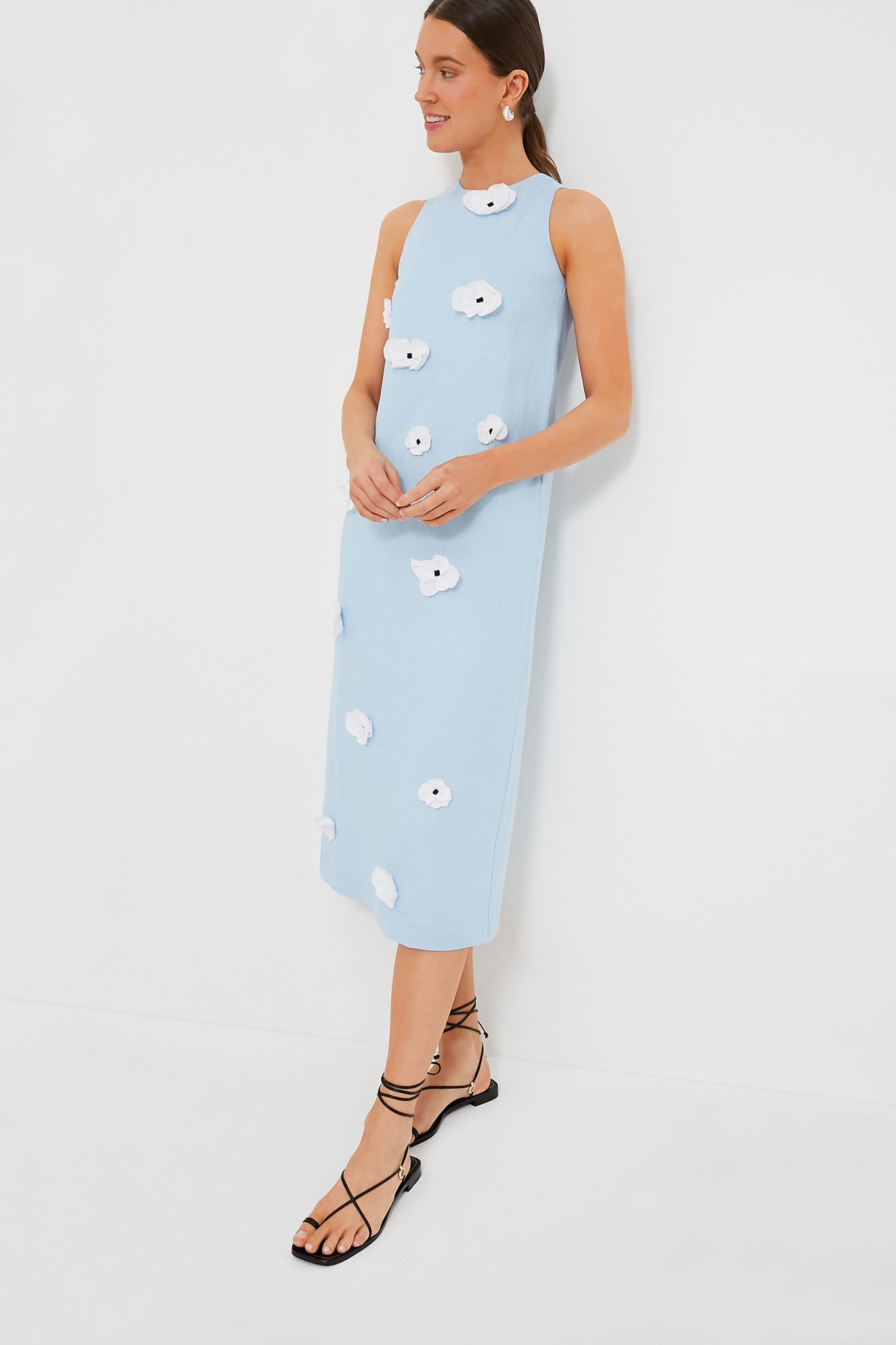 Blue Flower Bouquet Elanda Crepe Georgette Dress