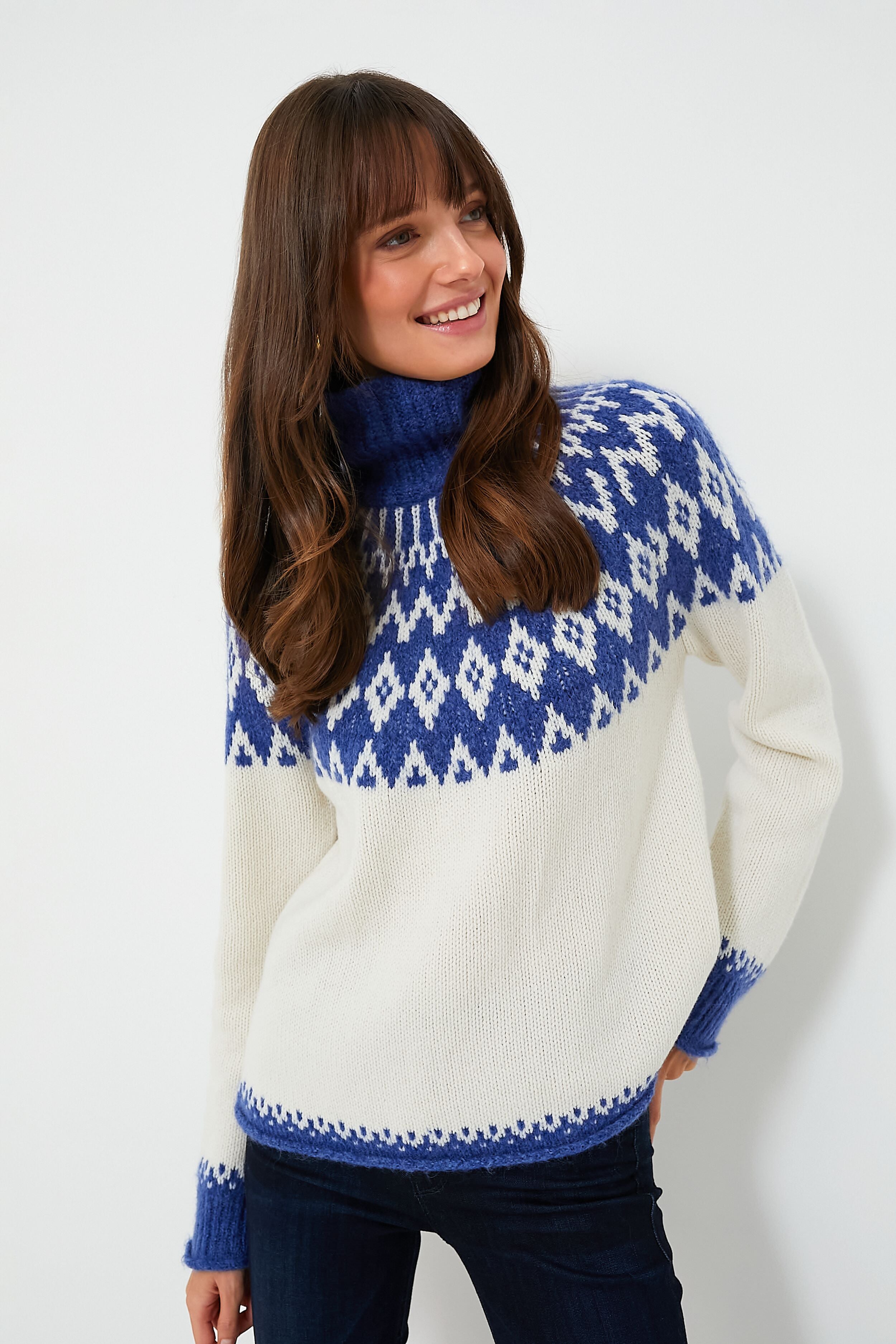 Off White and Navy Ceriani Knit Jacket with Sequins