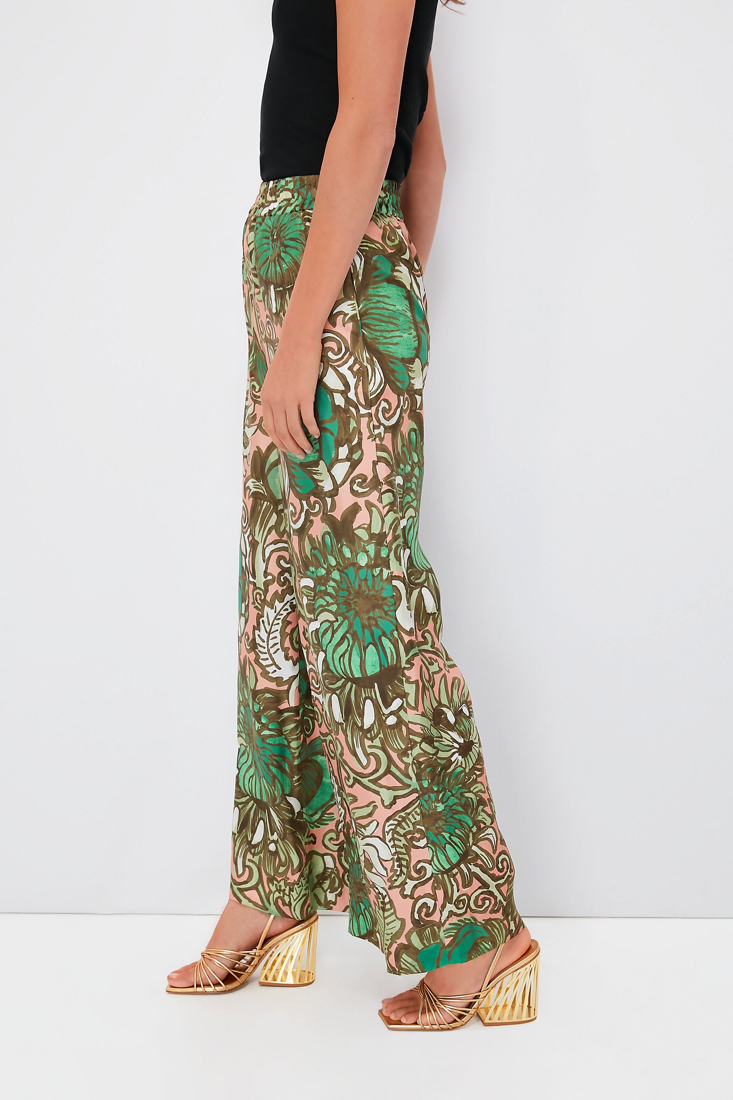 We are living for the big boldness of the Anemone Pink Palazzo Pants. These trousers sit high on the waist with a comfortable elasticated band that you can wear from day to night without feeling the least bit uncomfortable. A wide. breezy fit through the legs and a luxurious silky smooth composition is everything we have been searching for to bring the vacation mood. Pair with a basic tee and sunnies to sip spritzes by the sea. or style it with the matching La Scala top for a statement-making look.