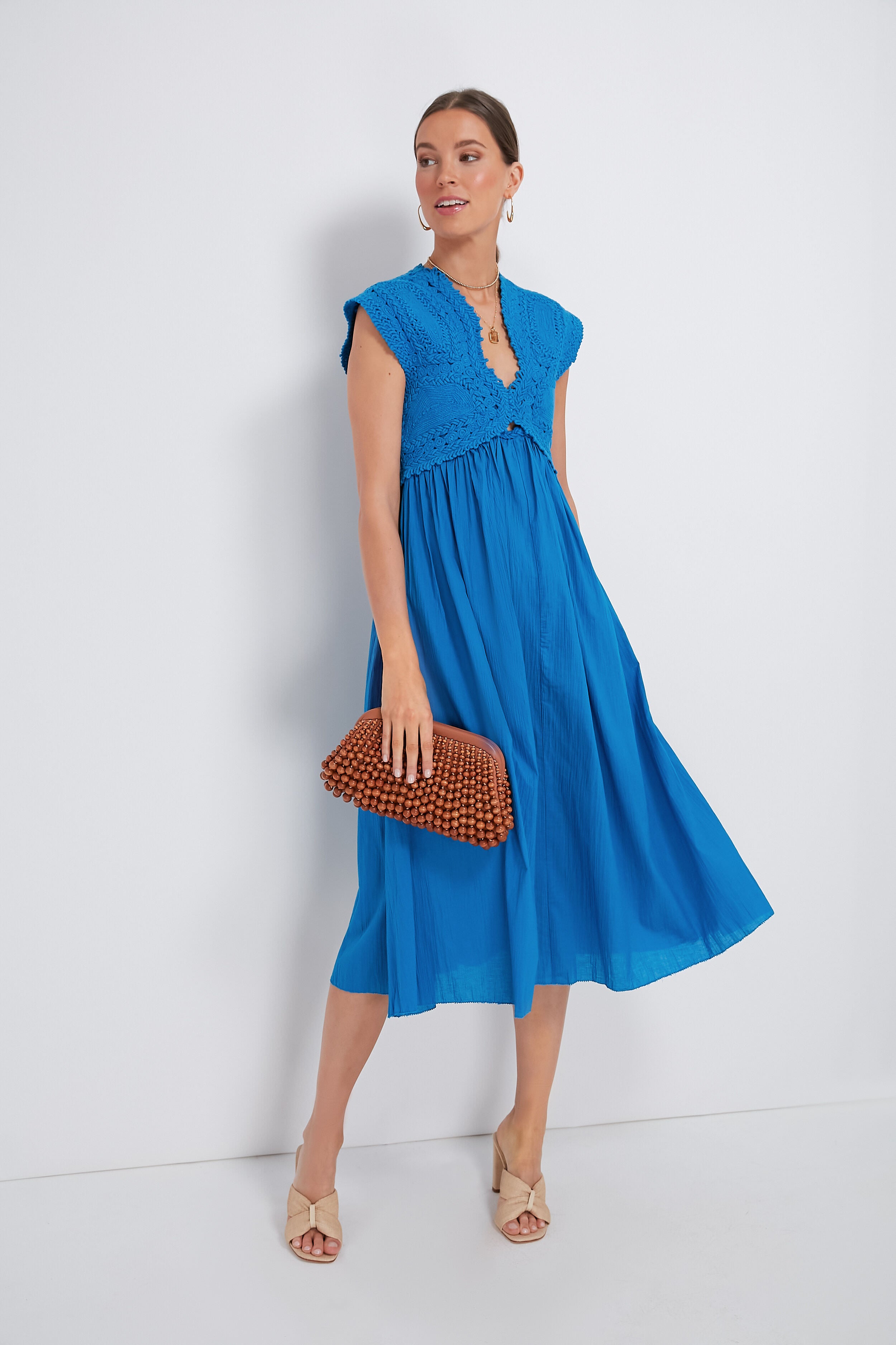 Crafted entirely from breezy cotton. the ultra-feminine Aqua Camila Dress is designed with an intricately corded bodice — and how pretty is that scalloped neckline? With a pleated skirt that falls gracefully to midi length. as well as some of our favorite details like sweet cutouts and functional side seam pockets. this stunner is vacation ready! Dress it down with sandals for a light lunch in the sun. or style it with heels and statement earrings for a garden party.