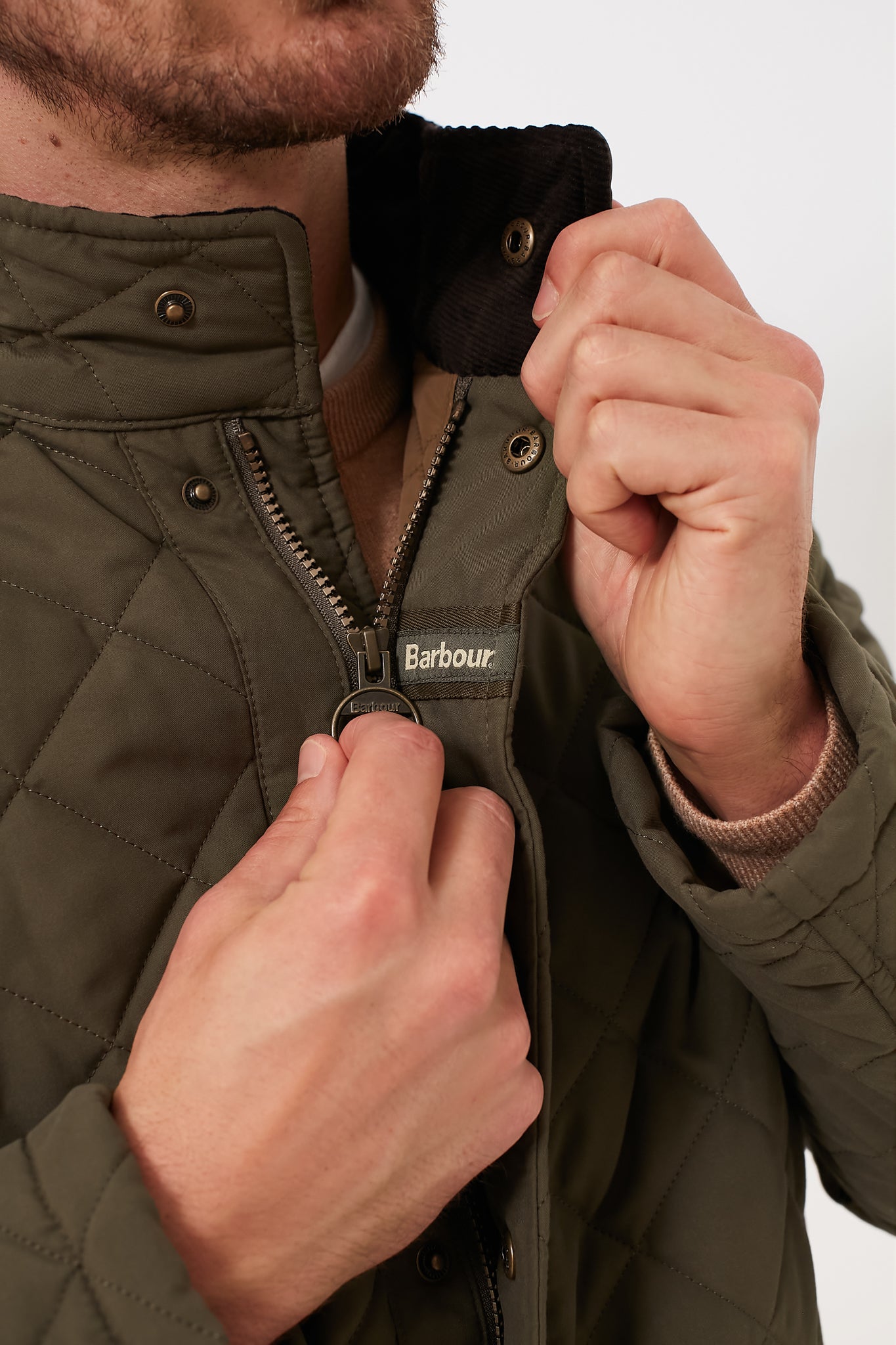 Barbour's Shoveler Quilt jacket features studded flap pockets. corduroy inner collar and a diamond quilted finish. From tailgates to days at the breweries. this will take you everywhere!