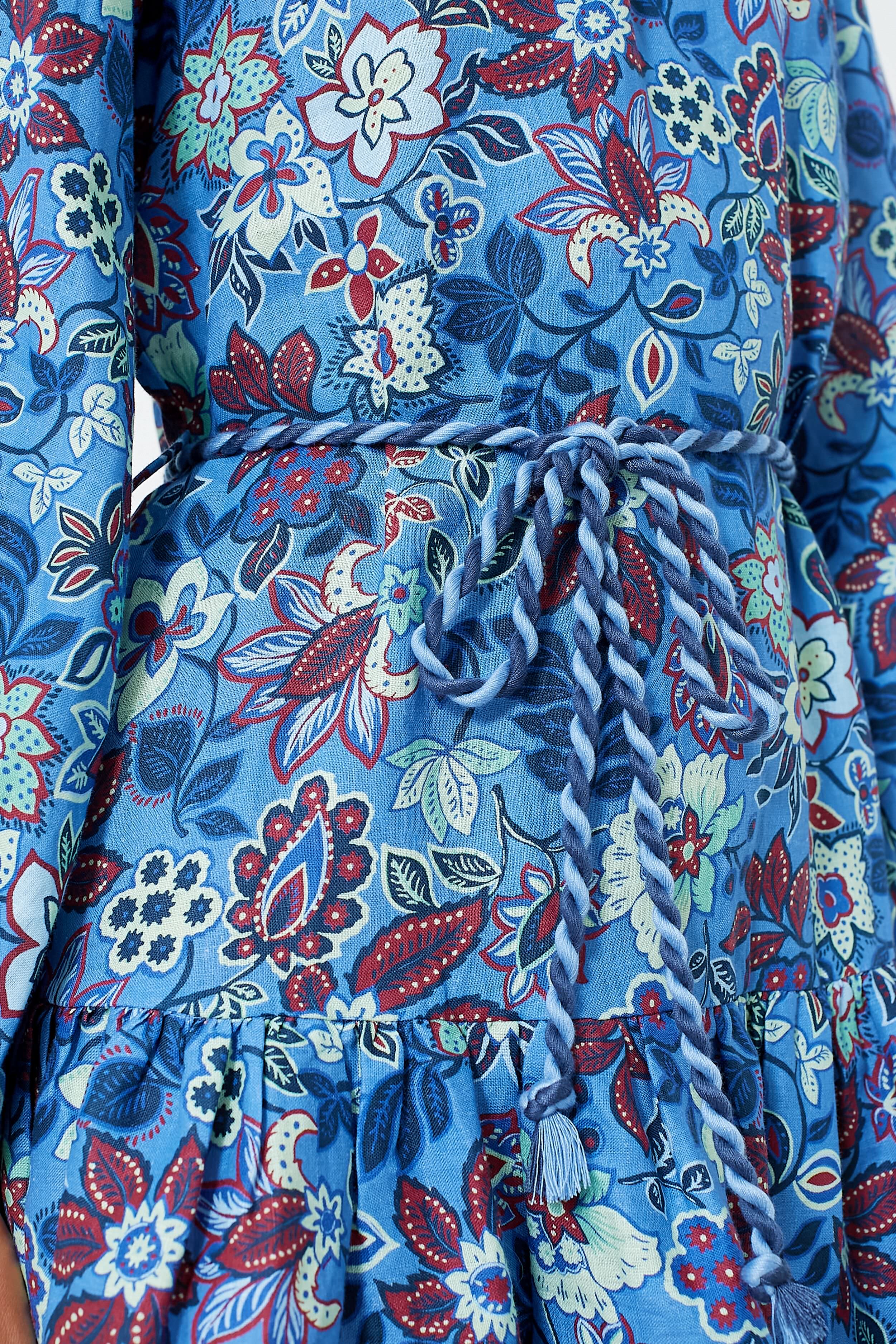 What a marvelous mini! In a stunning array of blue hues. the Azure Isabella Dress has all the details we are looking for — a stand collar that provides a touch of elegance. long balloon sleeves that bring the drama. and a flattering dropped waist that's finished with an optional rope belt full of boho-chic flair. Crafted from a sustainable and airy linen fabric. this style is not to be missed. Pair it with gold hoops and sunnies for an easy yet elegant daytime look. or dress it up with heels and a clutch for an elevated styling.