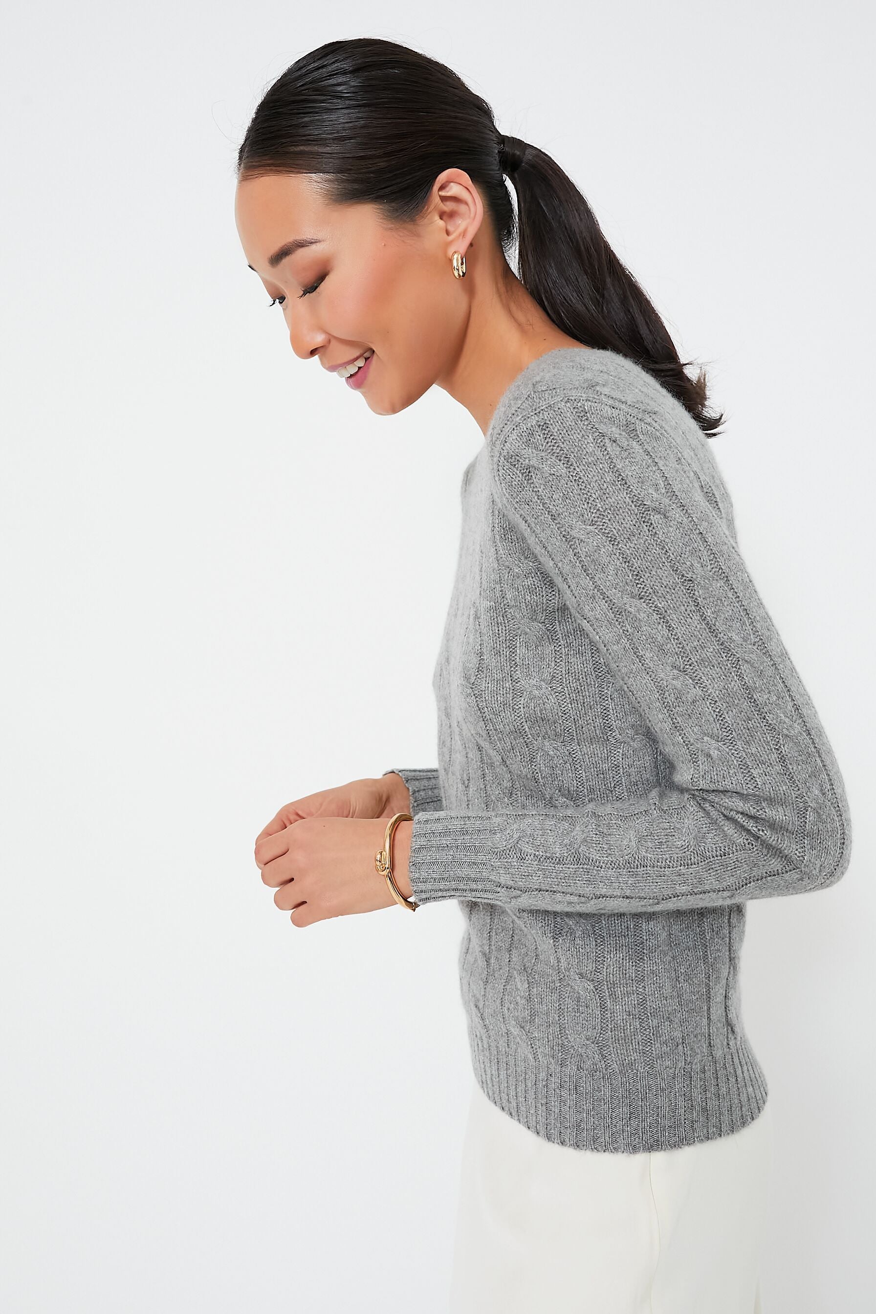 It simply doesn't get more classic than a cable-knit crewneck. The Battallion Grey Heather Julianna Long Sleeve Pullover is a timeless style staple that is sure to live in your closet for years to come. Made of soft cashmere for a luxe feel. this sweater looks perfect no matter how you style it — layer it over a button down or a dress. pair it with denim or a mini skirt. throw it over your shoulders. add a blazer over the top... need we say more?