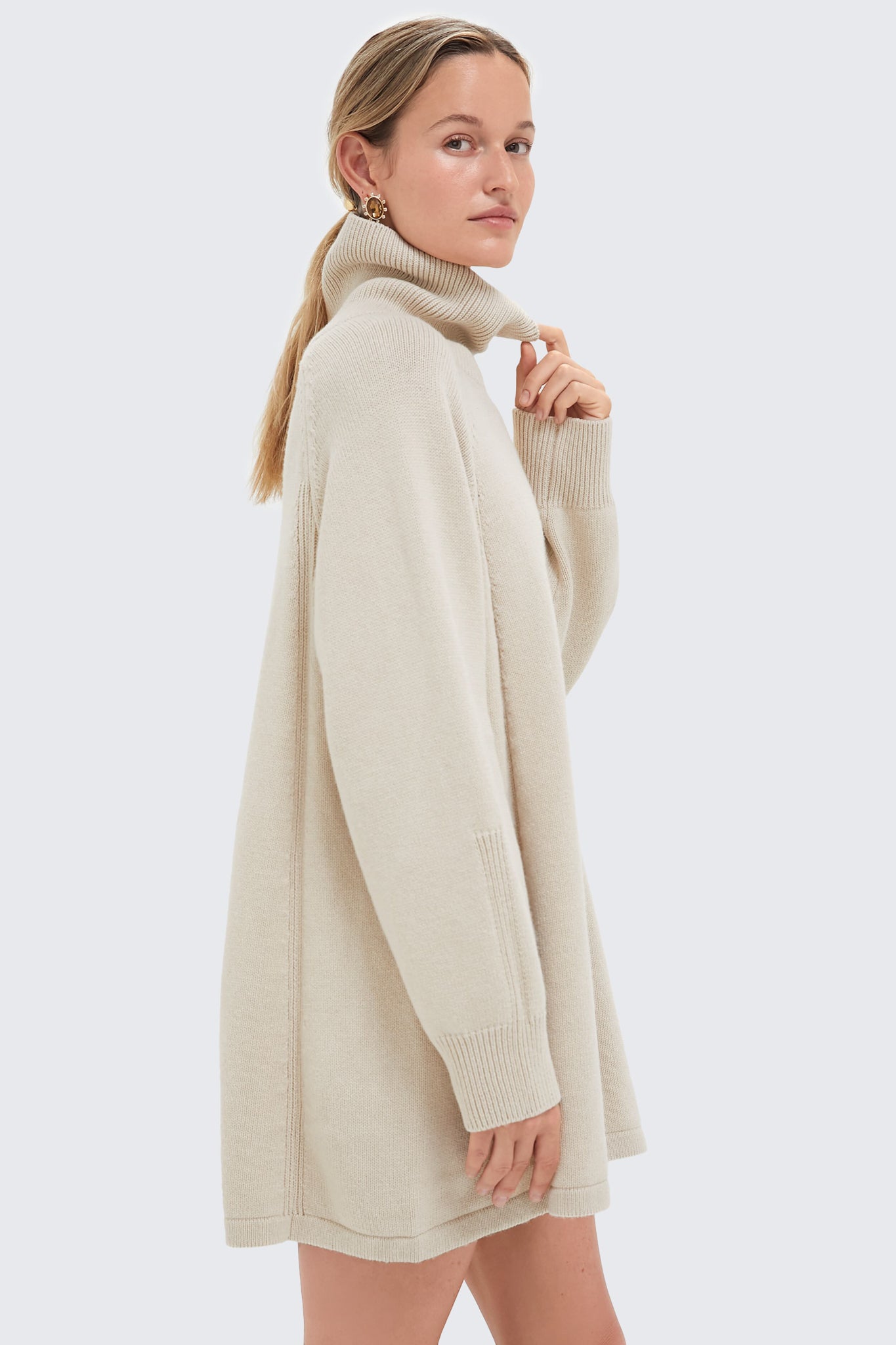 The Medee Dress is perfect for the days your want be comfortable. yet stylish. Featuring a roll neck. voluminous raglan sleeves. and decorative knit detailing on the arms. this isn't your average sweater dress! We recommend pairing with western inspired boots and a tote bag for a chic. yet effortless look!