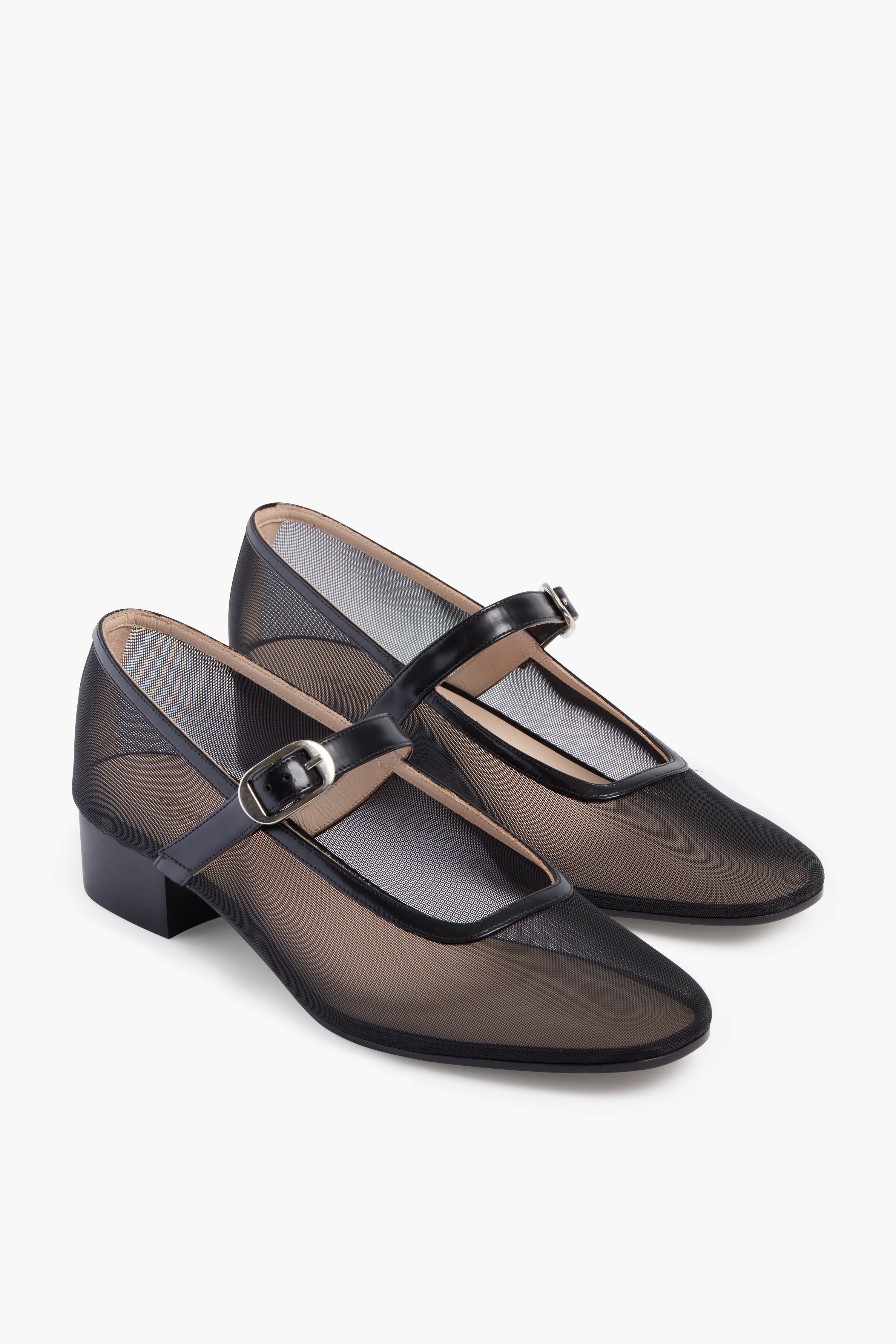 Made of semi-sheer mesh that brings a modern twist to a classic silhouette. the Black Agatha Mary Janes are all kinds of elegant! Set atop a barely-there block heel that will give you a touch of height while remaining comfortable enough for day to night wear. this pair is designed to elevate your ensembles. Finished with luxe leather trim. these are an absolute must-have that are perfect when paired with a crisp blouse and your go-to denim or trousers.