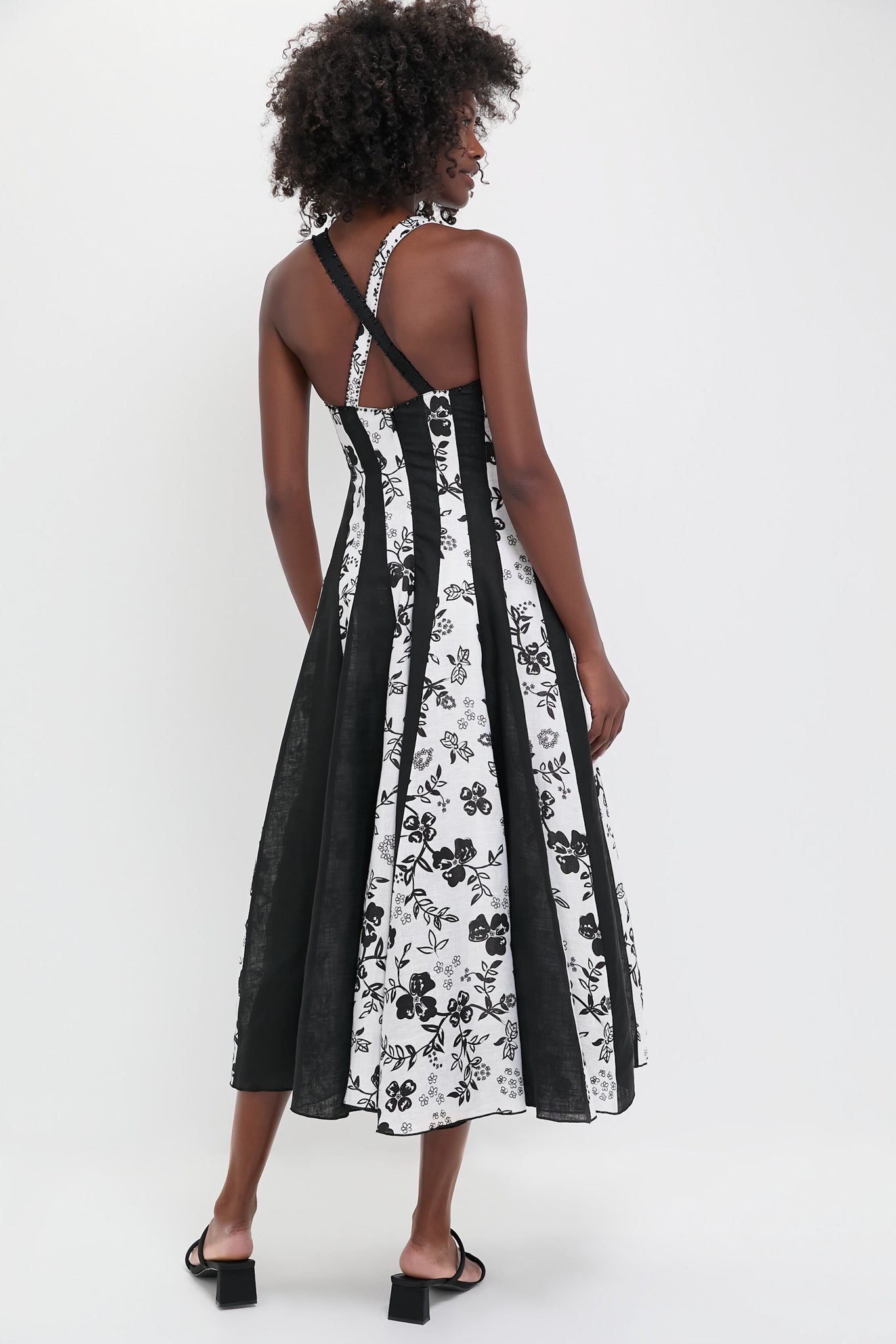 The Black and White Floral Linen Dress boasts a striking silhouette with beautiful contrasting panels. Ultra-flattering and elegant. this midi is sure to turn heads. Pair with a clutch and heels for a jaw-dropping look.