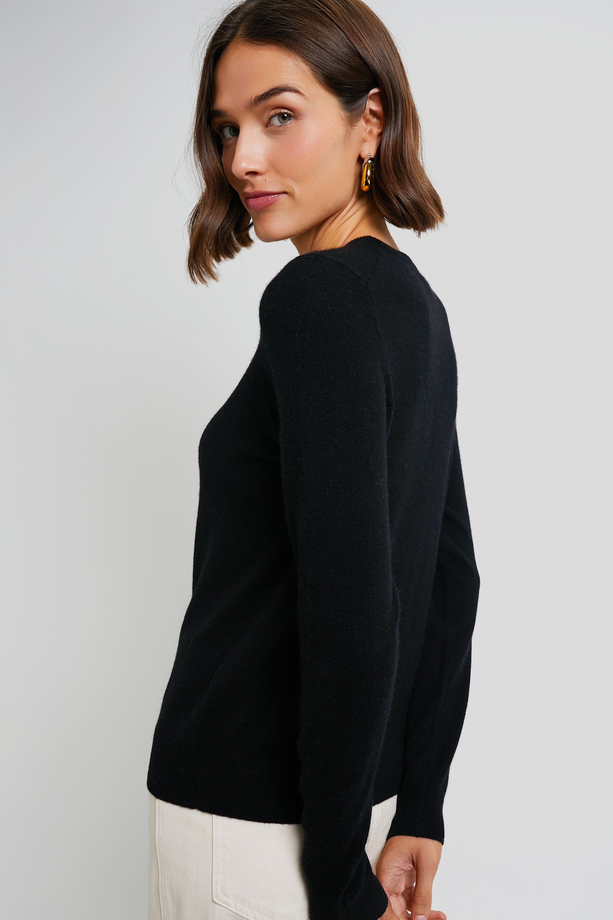 One of our favorite pieces of the moment. we simply can't get enough of the Black Cashmere Crewneck. Made from the softest yarn we could source. this effortlessly chic style is a timeless silhouette you're sure to love for years to come. Perfect for gifting if you choose to add the optional monogramming. or a sweet piece of affordable luxury to treat yourself. this neutral number is a no-brainer — pair it with denim or a mini skirt. boots or flats. over a button down or under a blazer. the options are endless!