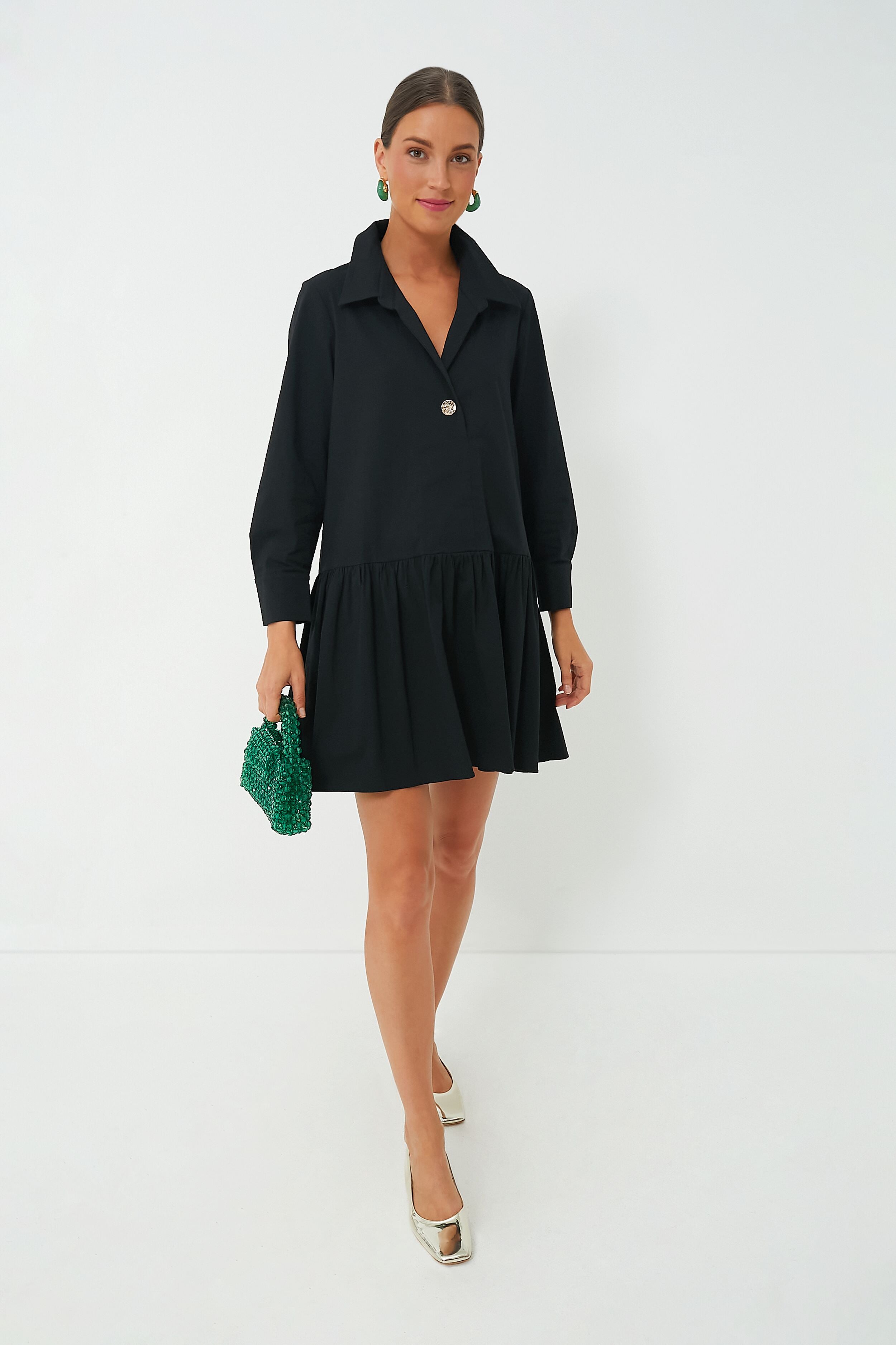 Just right for lunches out. weekend getaways. and transitional seasons. the Cleia Dress is working overtime. Designed with a spread collar. quarter length front placket with a single textured gold button. and a drop waist making for a flirty swing silhouette– we can't stop thinking about this feminine mini. Pair it with heeled sandals and gold accessories for an updated vacay look or with sneakers and sunnies for the girl-on-the-go.