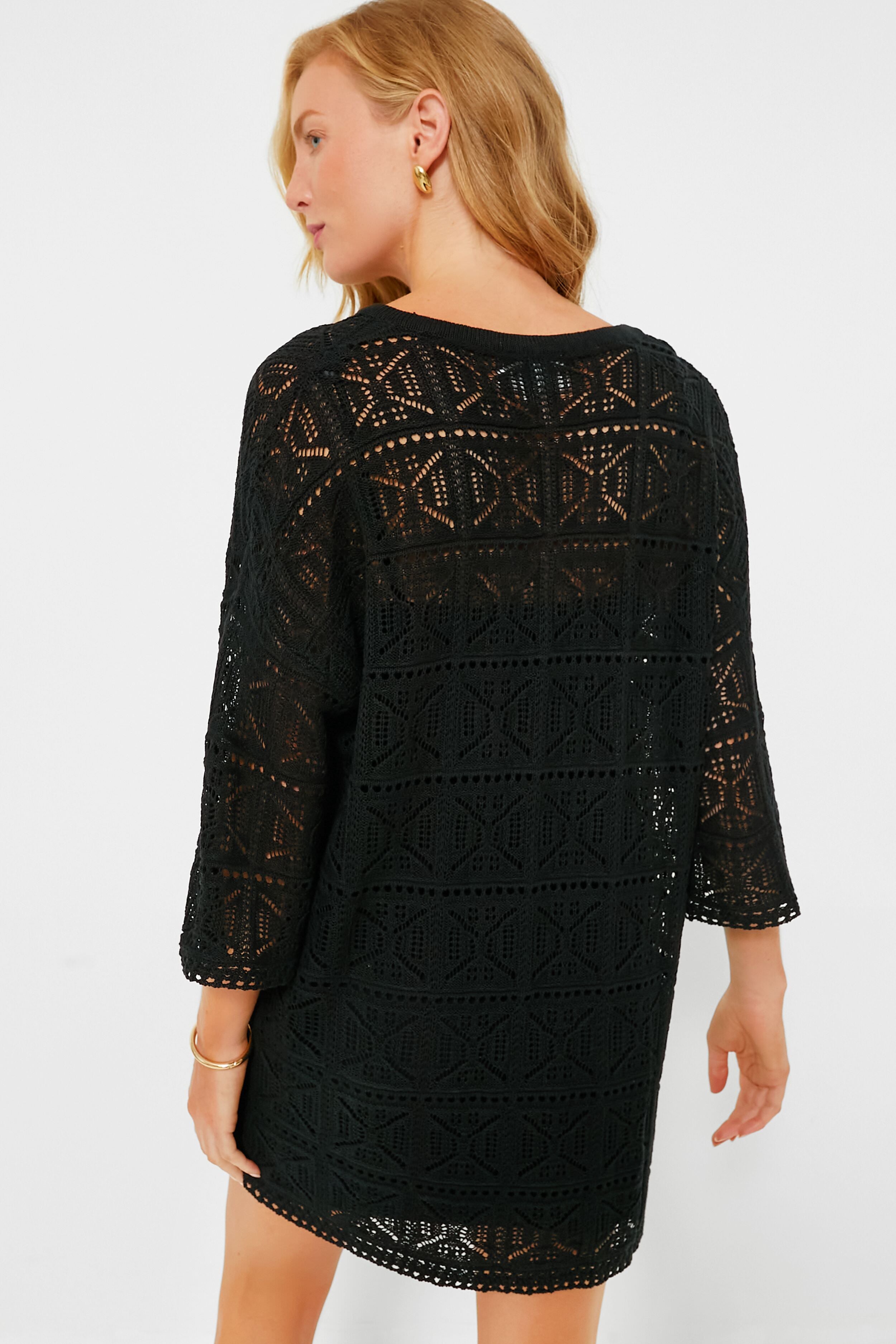 Crochet is all the rave right now. and we are obsessed with this chic Knit Kai Dress. Perfect for warm summer days into chilly evenings. this mini boasts three-quarter length sleeves. a crewneck with a beaded self-tie closure. and a straight silhouette. Pair with sandals and a tote or easy sneakers and a crossbody for an effortlessly-chic look!
