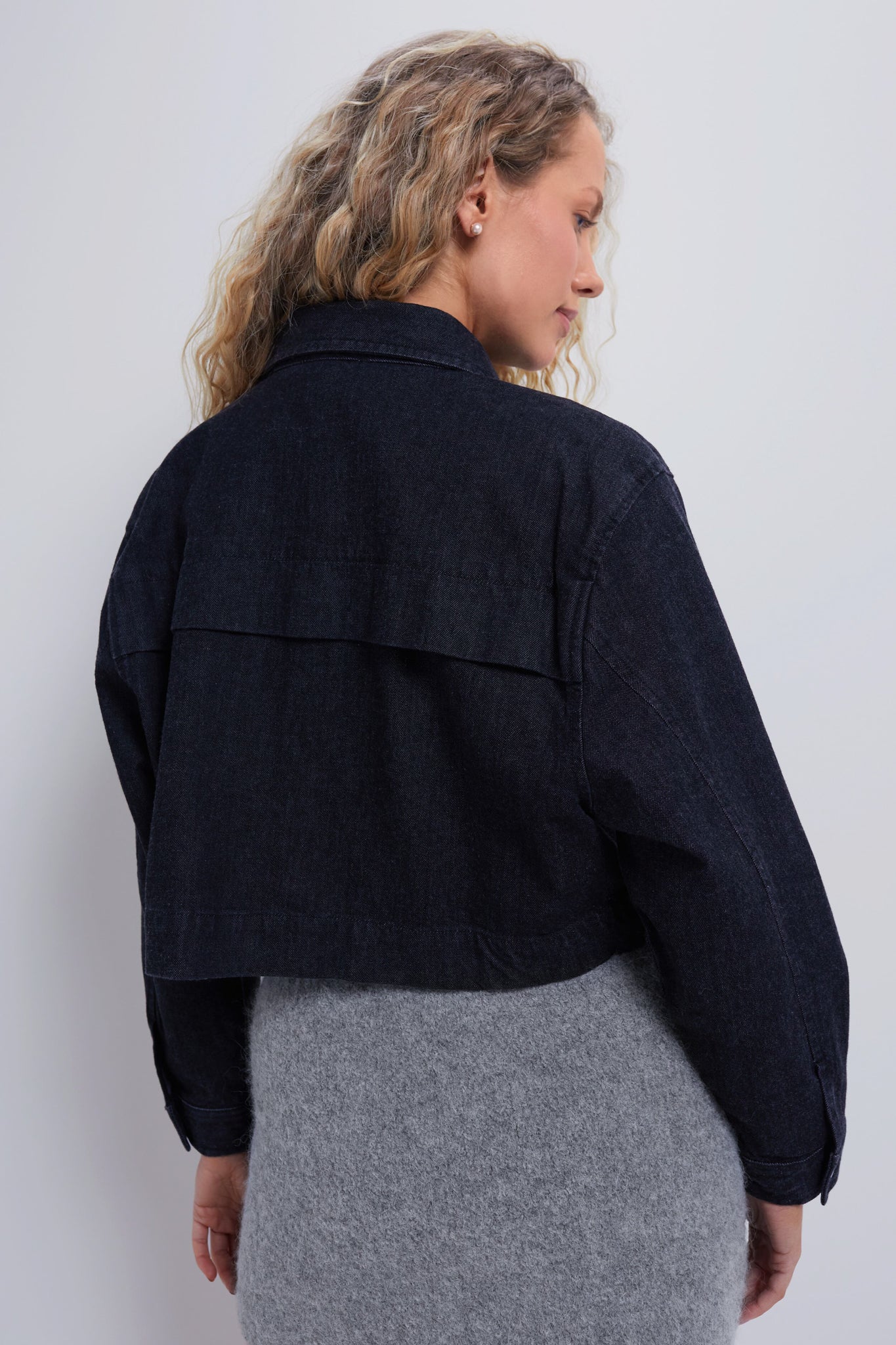 The Dean Black Denim Jacket by Cleobella is a sleek cropped denim jacket that effortlessly adds an edgy touch to your outfits. It is designed with a high quality denim. a front button closure. and flap side pockets. Pair with denim pants for a coordinated set. or with an A-line mini and ballet flats.