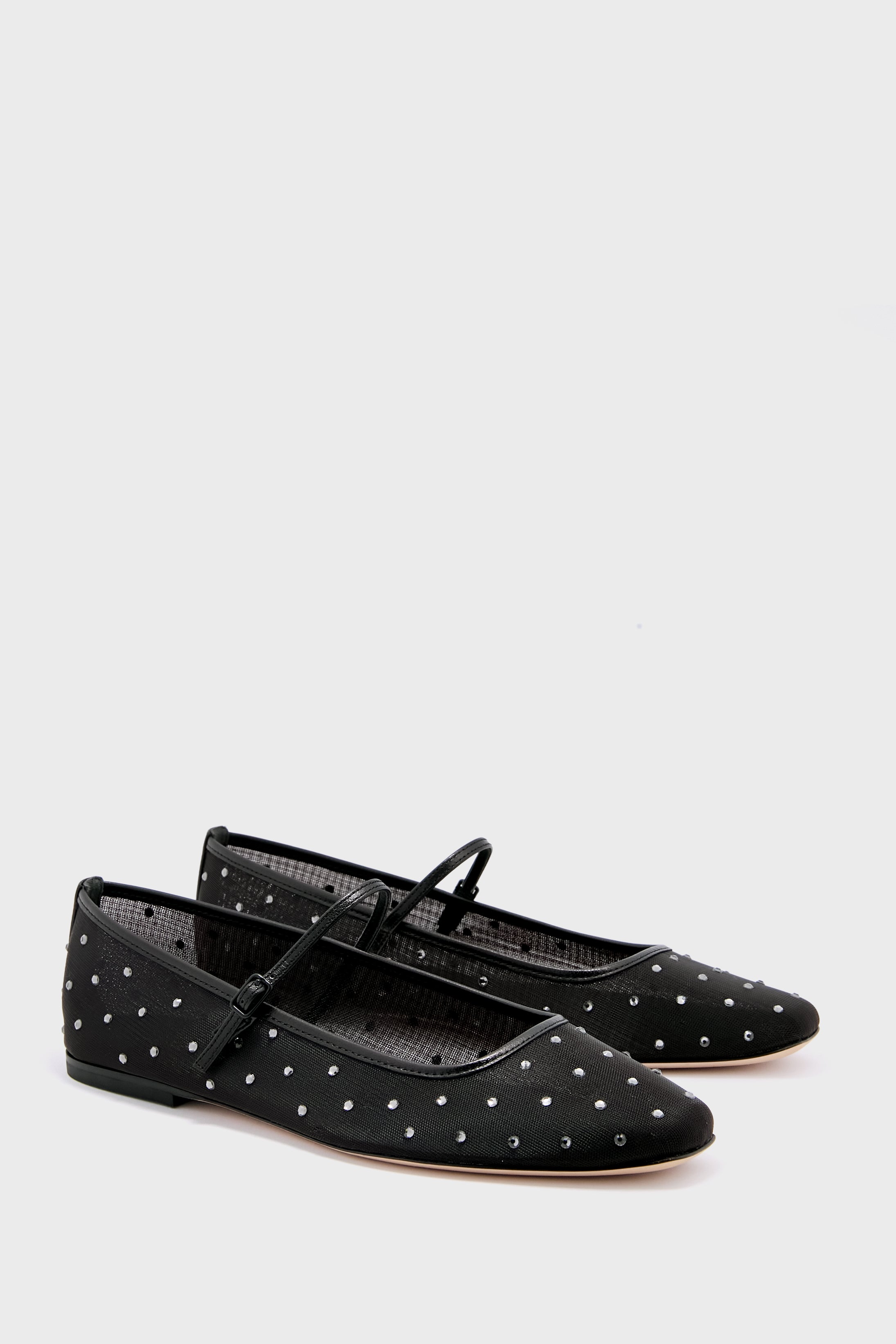 A timeless silhouette with distinct detailing. the Black Diamond Ellie Mesh Crystal Flat is studded with crystals and finished with a demure strap at the vamp. They're an effortlessly chic pairing with your favorite jeans or go-to LBD!