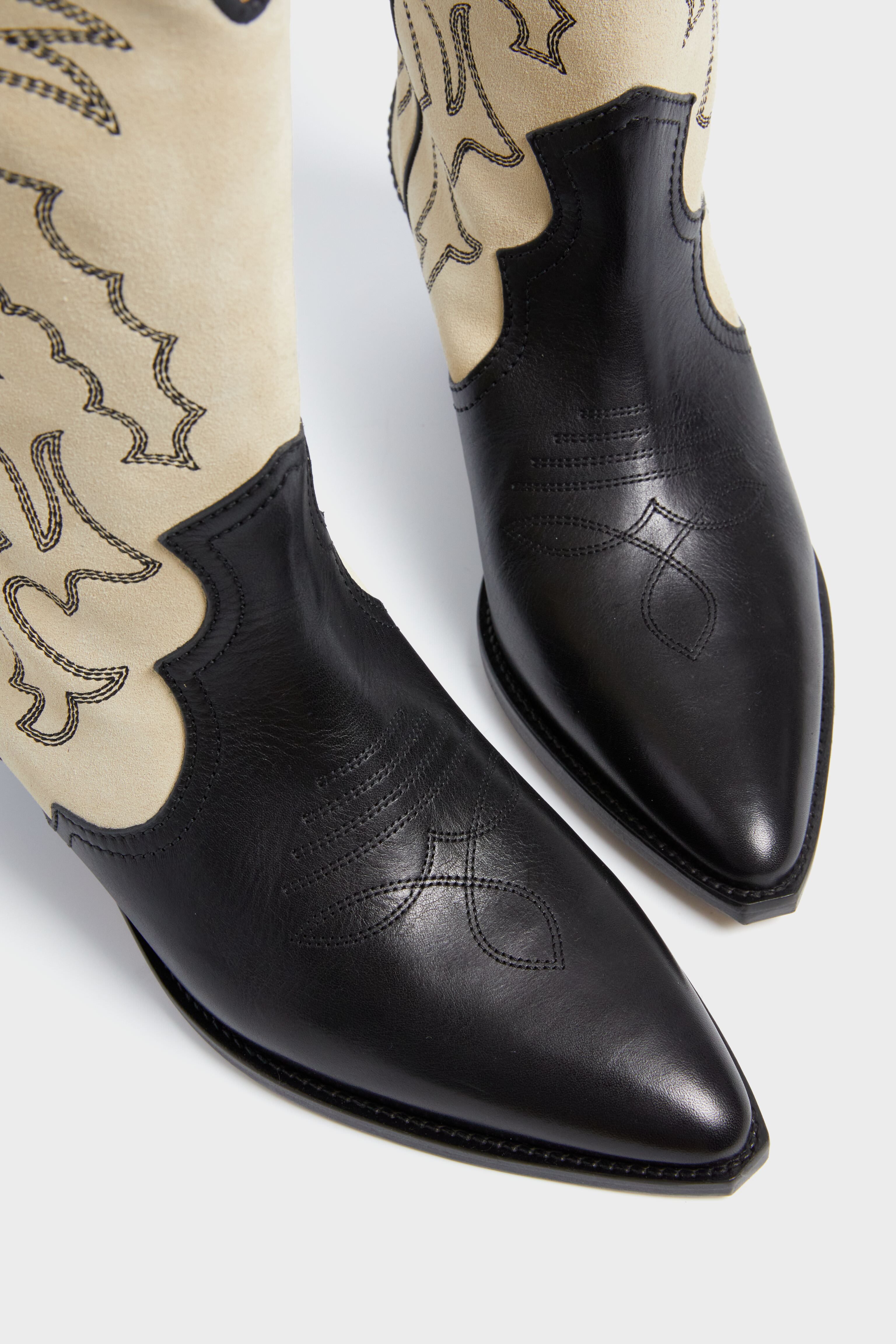 A classic cowgirl boot is needed in every woman's closet. and we are loving these Black Ecru Duerto Boots by Isabel Marant. Leather and suede come together to create a fashionable style that will go with everything from denim to dresses. We are pairing these with a maxi and gold jewelry for a western-chic outfit.