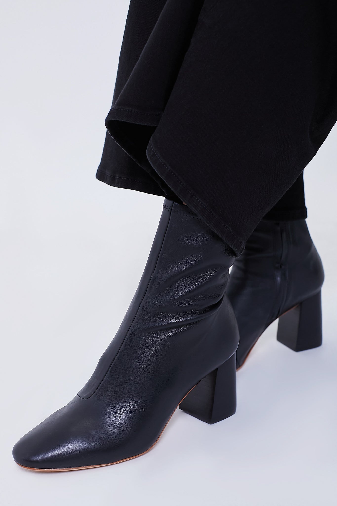 Featuring a comfortable block heel. a flattering slim ankle. and a slightly stretchy nappa leather. the Black Elise Boots will be the perfect addition to your shoe collection. From wide leg denim to mini skirts to maxi dresses. these neutral ankle-height beauties pair perfectly with just about anything. and look great while doing it. Go ahead and add to cart. we know you won't regret it!