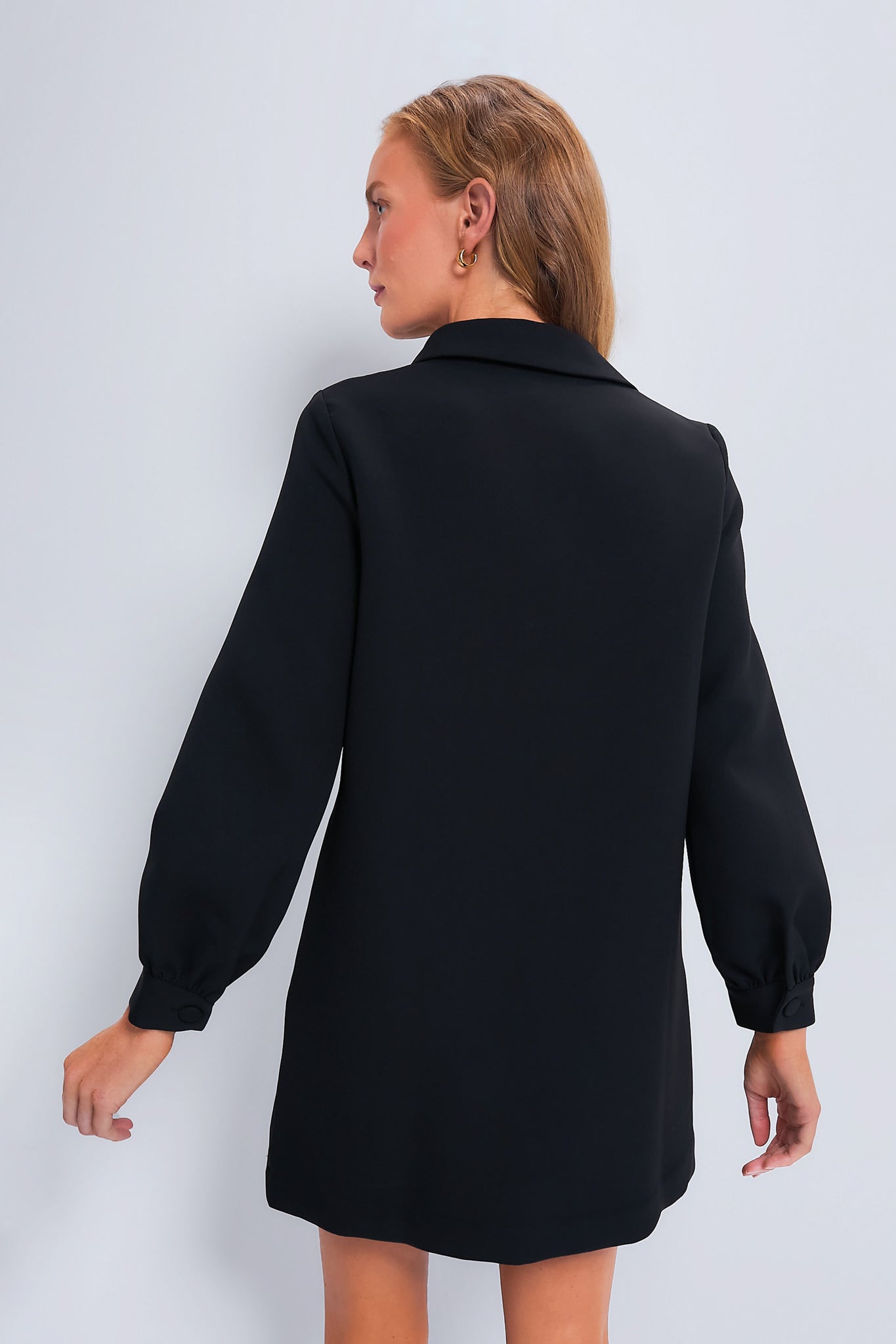 The Etta Dress boasts a sleek silhouette with elevated details such as the sheer yoke and long balloon sleeves. The perfect transition from day to night. we are pairing these with loafers and a crossbody for the office. and heels and a clutch for a dinner date!