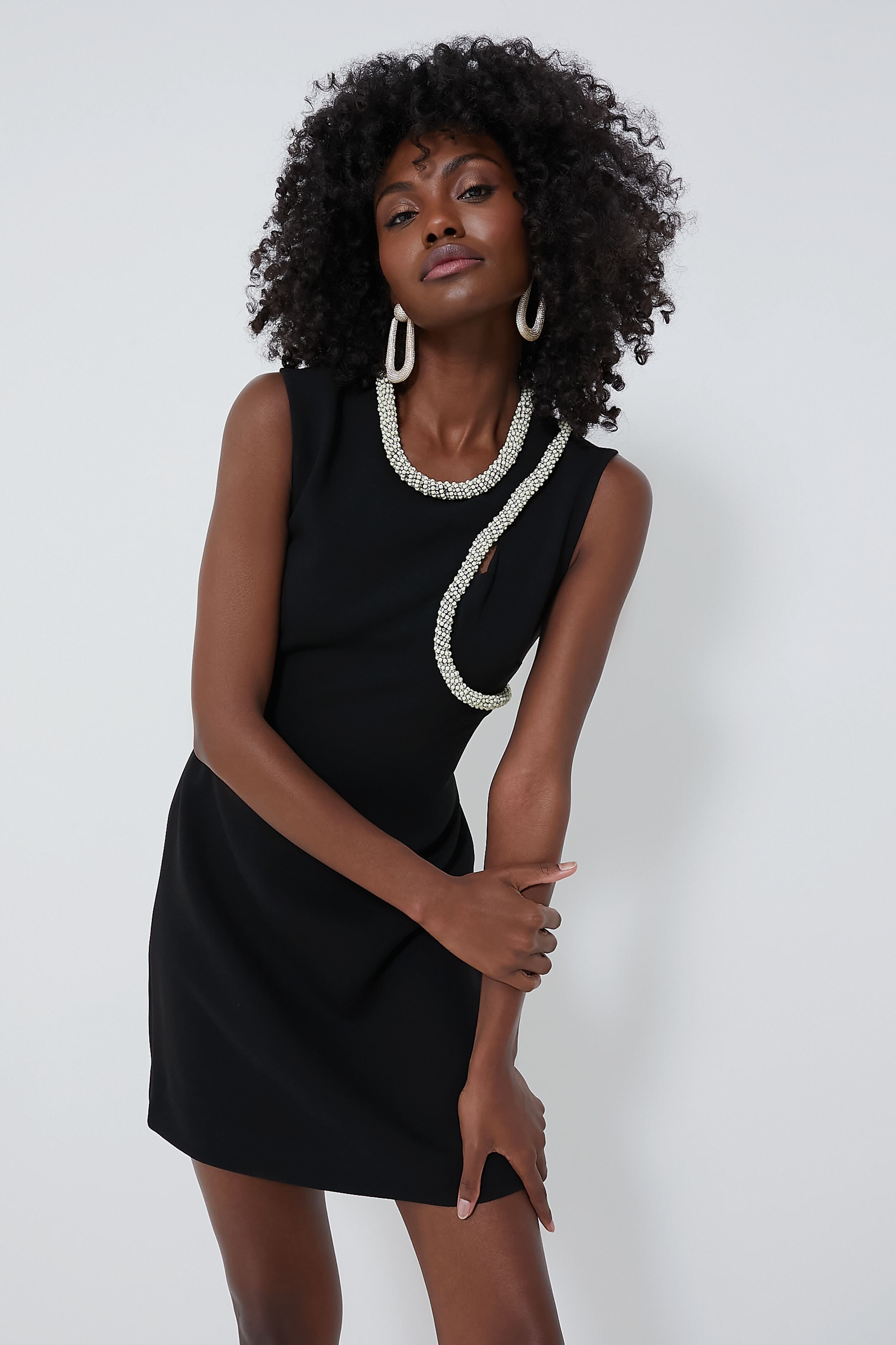 Effortlessly elegant with a hint of sultry. the Black Kat Sleeveless Dress does it all. This mini features fun cutouts to show a tasteful bit of skin. and rope-inspired diamante embellished detailing that catches the light to help you shimmer and sparkle all night long. Pair with your best heels. a clutch. and statement earrings for a party look that won't quit (and don't forget to grab a glass of bubbly too!).