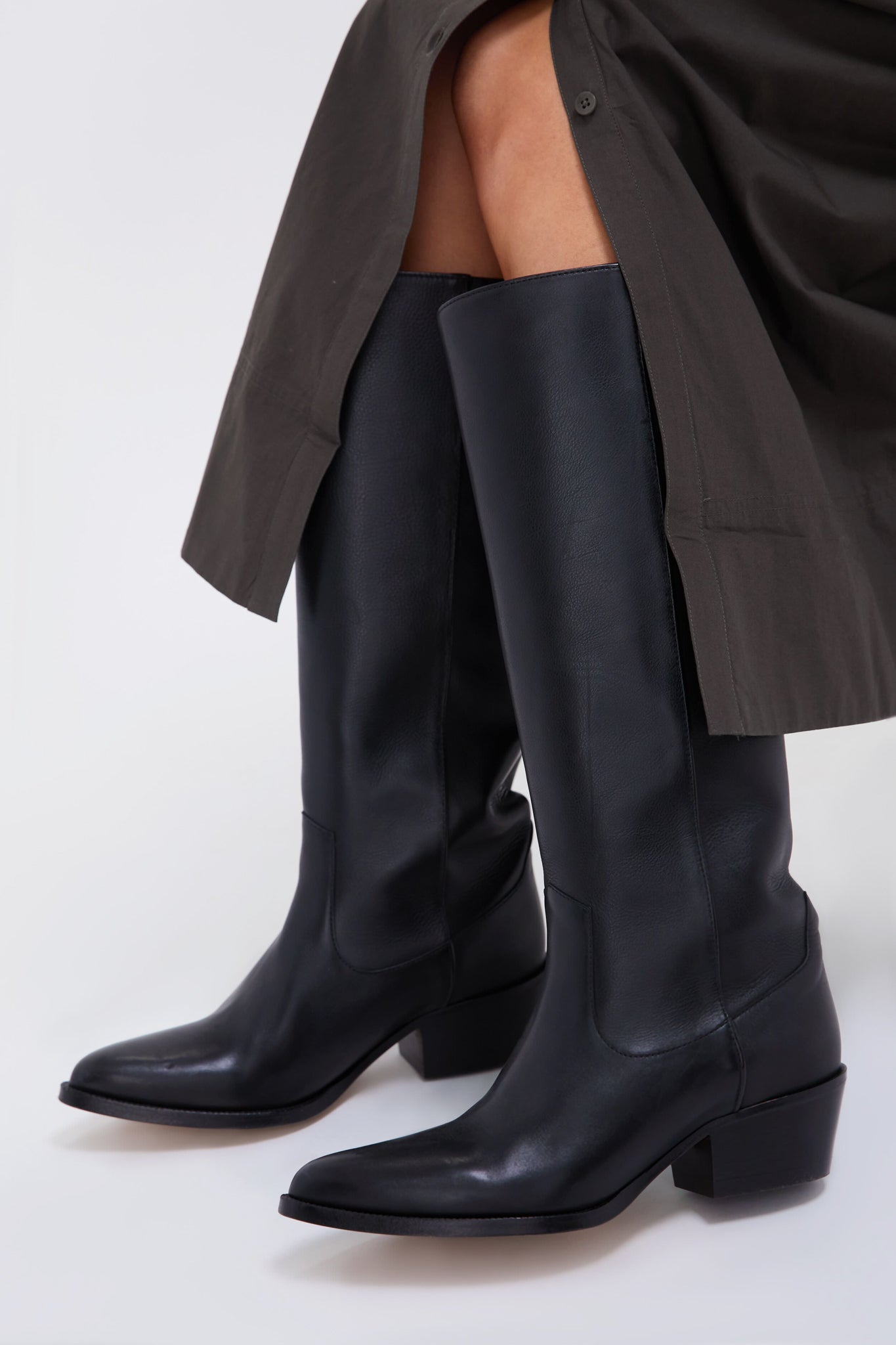 This classy boot exudes pure sophistication and elegance. The tall silhouette and luxe leather makes them a closet staple that will elevate any outfit. Pair with a sweater dress and gold hoops for a cozy dinner party. or with a leather mini skirt and blazer for a voguish night-out look.