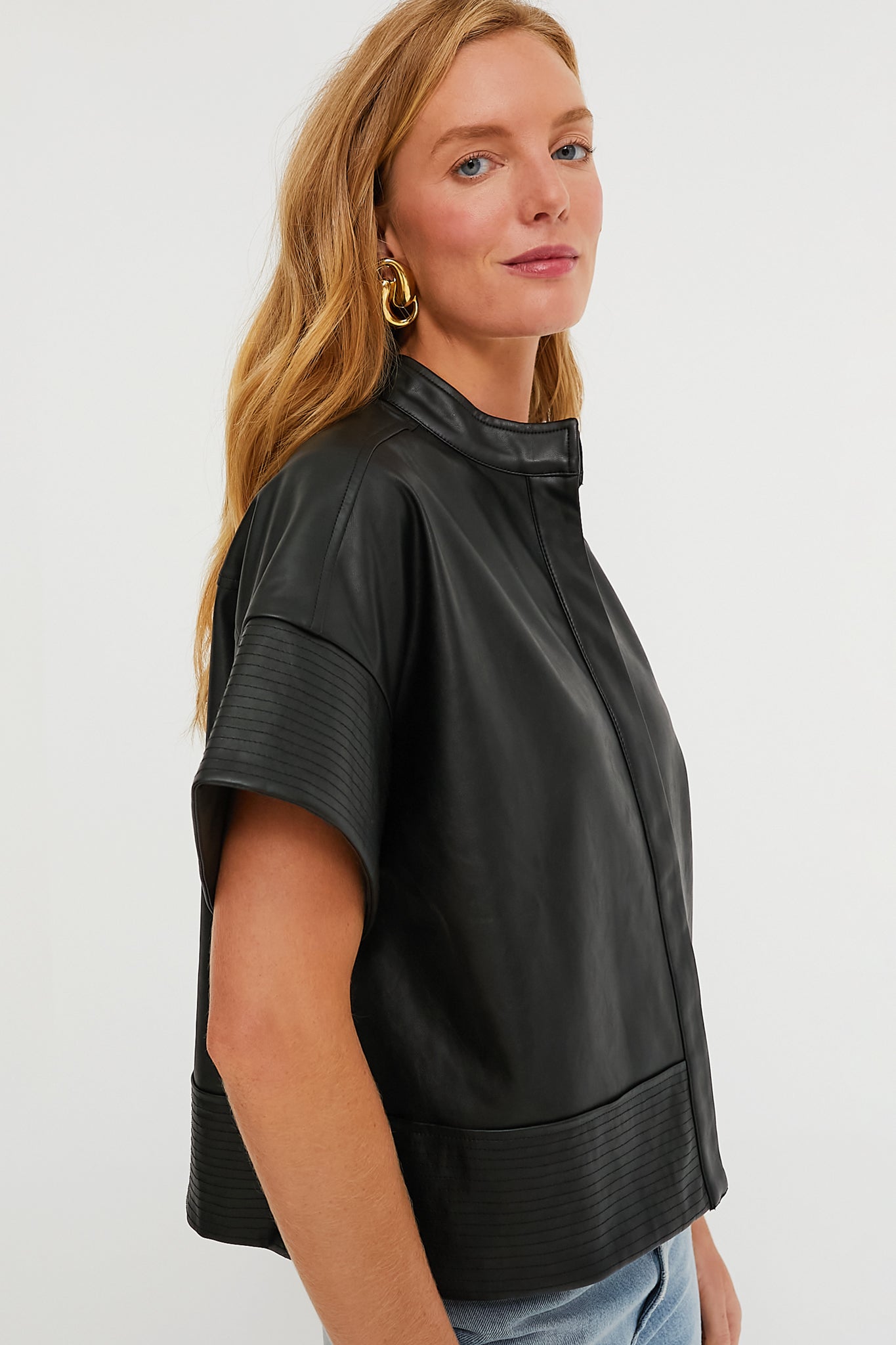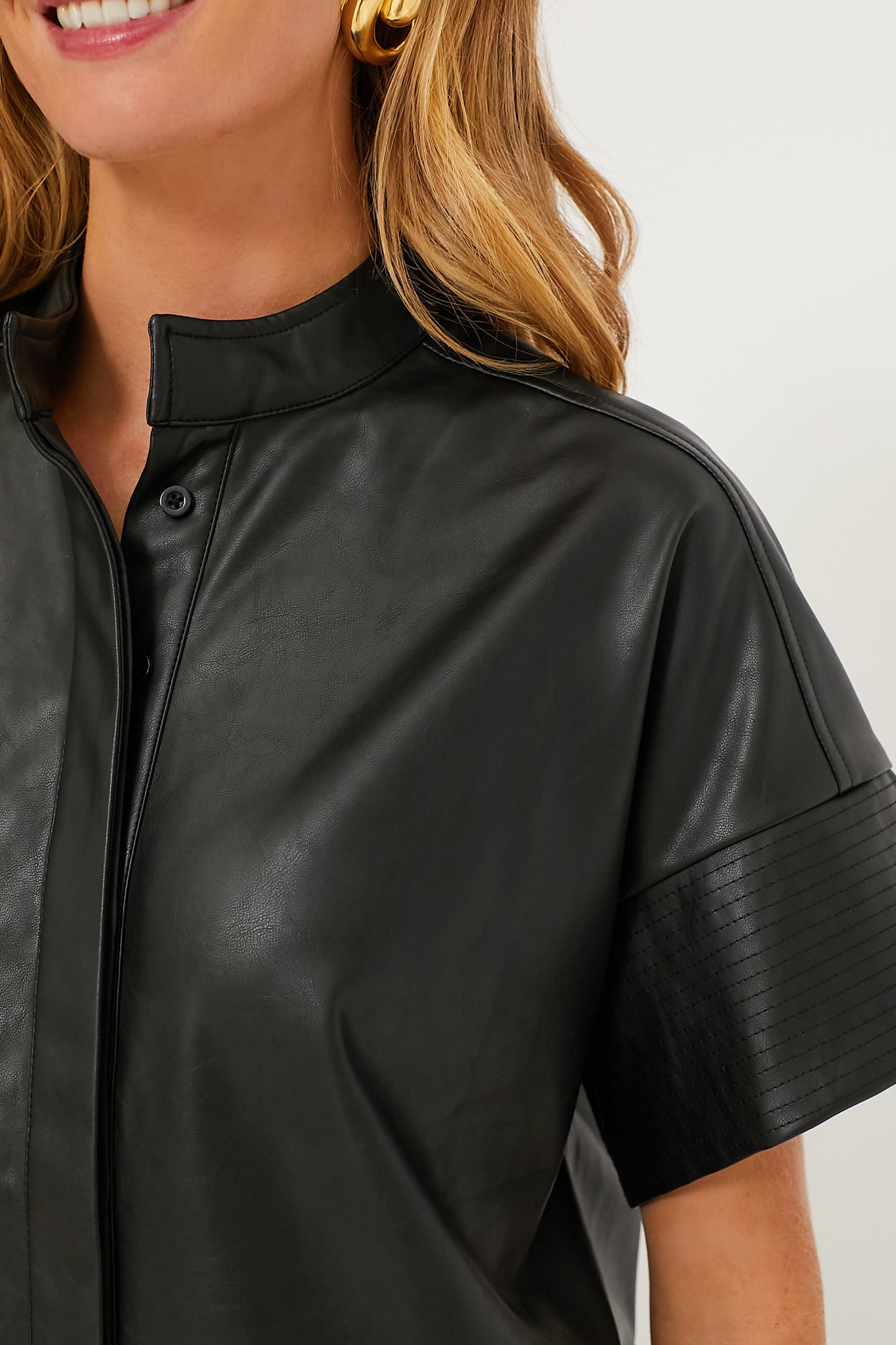 The Black Leather Trapunto Stitch Sofia Shirt is the elevated style staple your closet needs. A short sleeve button down with a slightly cropped hem and a boxy silhouette that's perfect for pairing with all kinds of bottoms. this style is finished with trapunto stitching that adds an extra-special detail to a classic look. Style with denim and ballet flats for the weekend or with a skirt and kitten heels for a dinner date — this number can do it all.