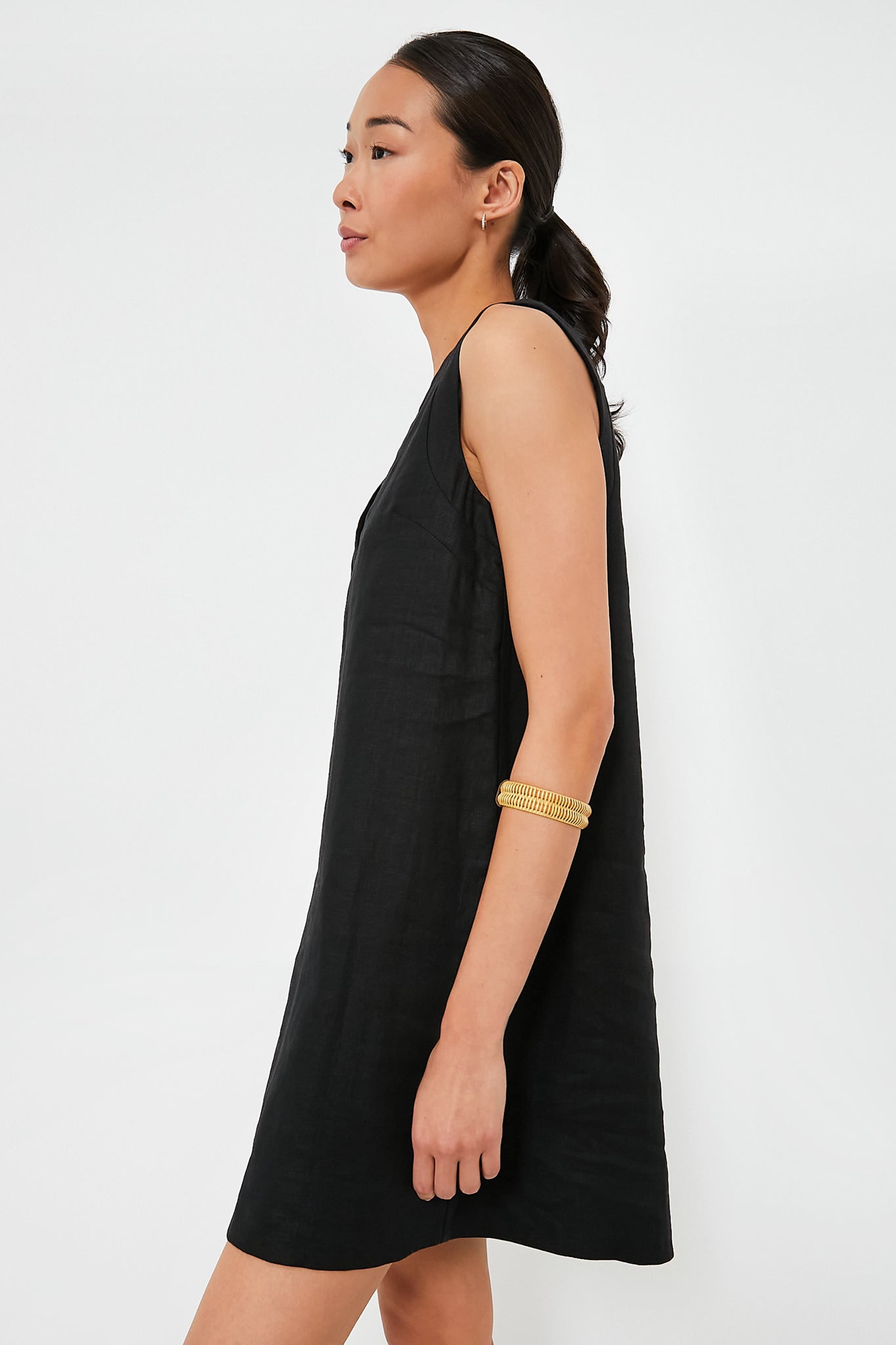 Need something easy and lightweight to throw on this season? The Black Linen Melanie Dress is for you! With a lightweight material. V-neckline. and boxy fit. you will be able to move comfortably and stay cool (and chic) all day. Pair with sandals. shades. and a hat for the beach and add a sweater thrown over your shoulders and a top handle bag for sunset dinner.