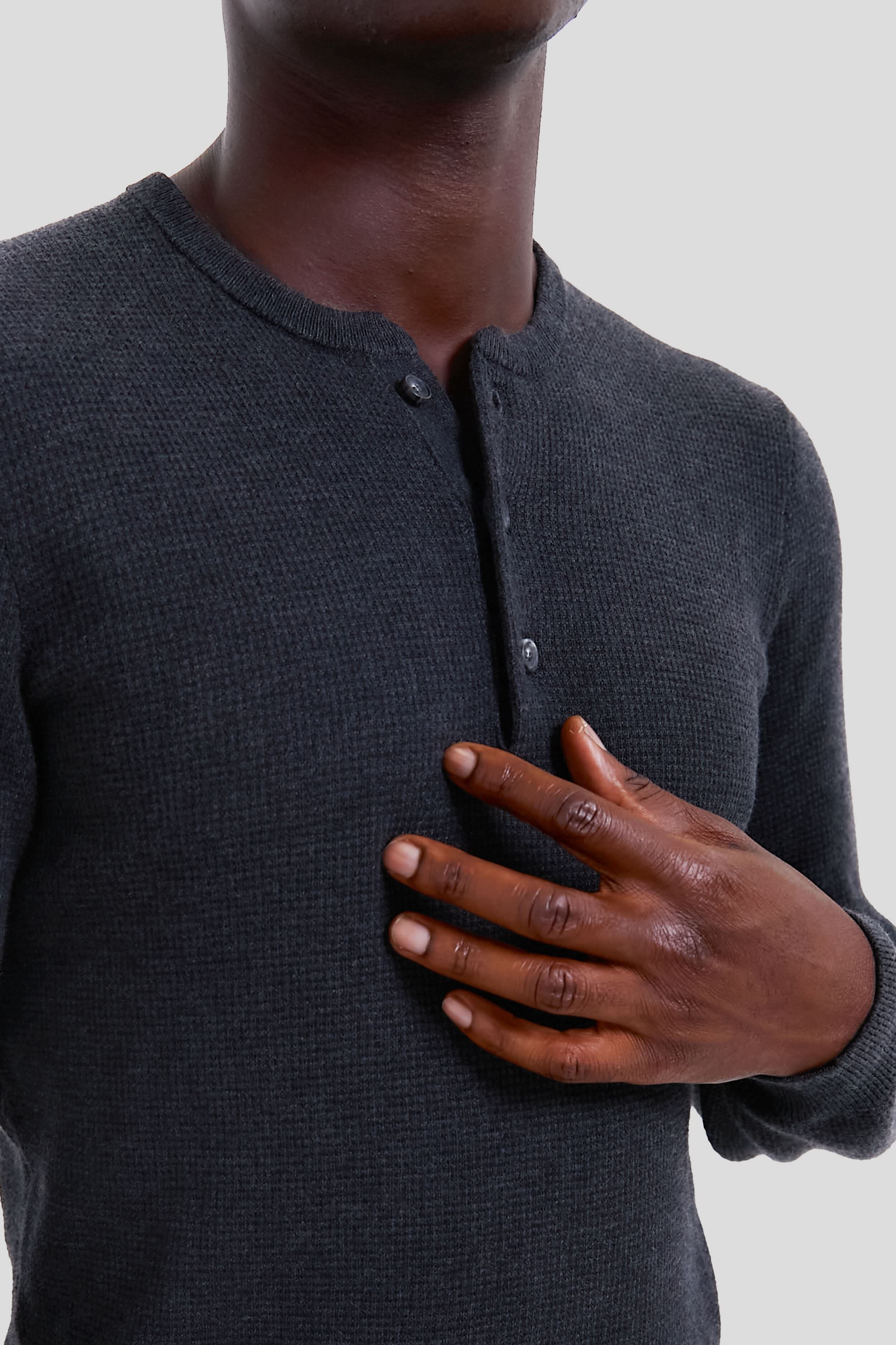 Beautifully crafted in extra warm merino wool from Spain blended with recycled polyester. this top is soft. durable. and the perfect transitional piece you need. Featuring a round neckline and partial front button placket. this relaxed silhouette is great for layering and everyday adventures. Style with denim. a jacket. and sneakers for weekend wear or watching the kids at soccer practice.