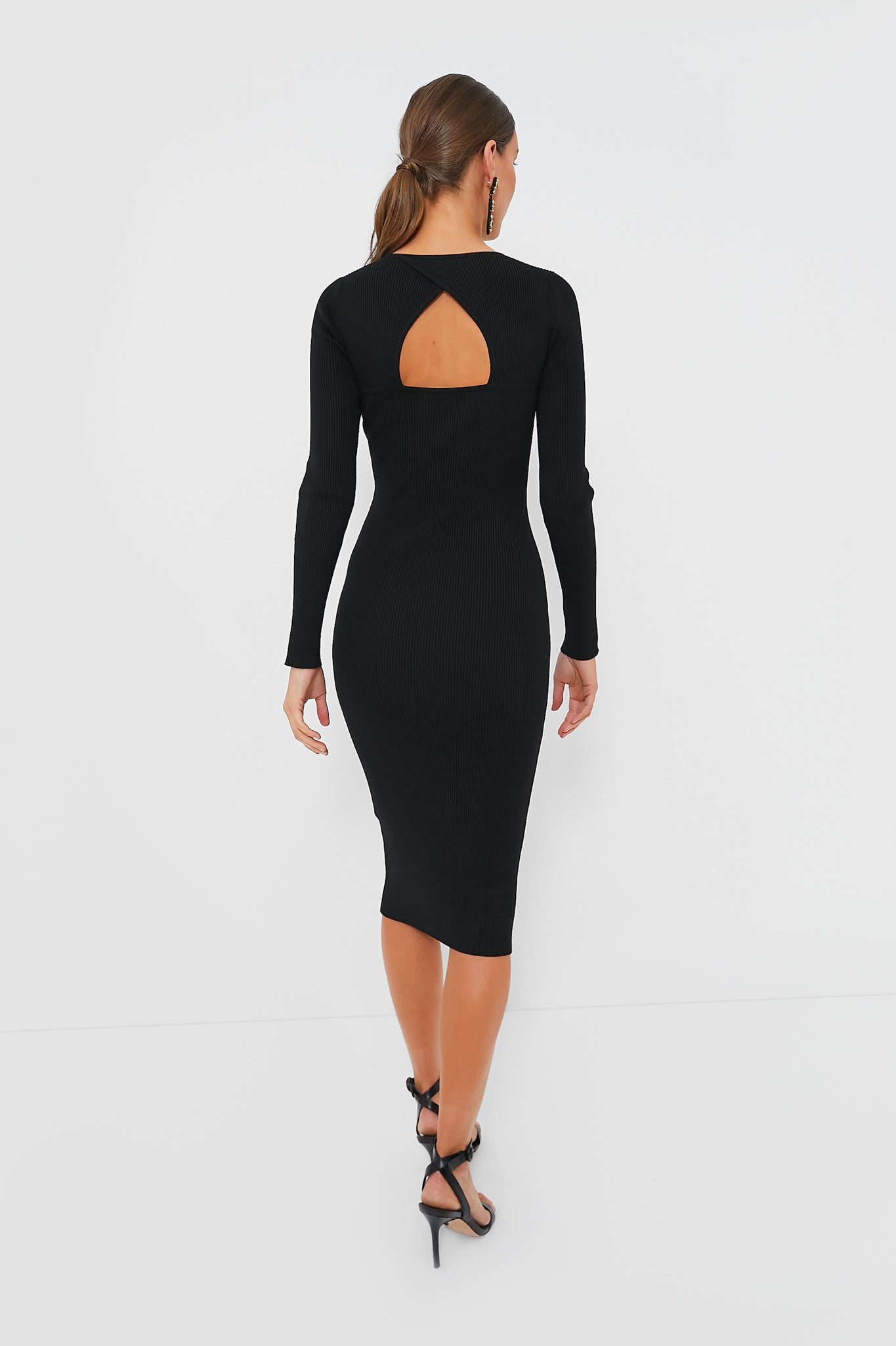 The Black Renon Knit Dress by Marella is a classy closet staple. The midi length and keyhole design add elements of sophistication. and the fitted silhouette and black color create an easy canvas for styling. Pair with heels and gold jewelry for a chic date-night. or add pops of color with a statement necklace and clutch.