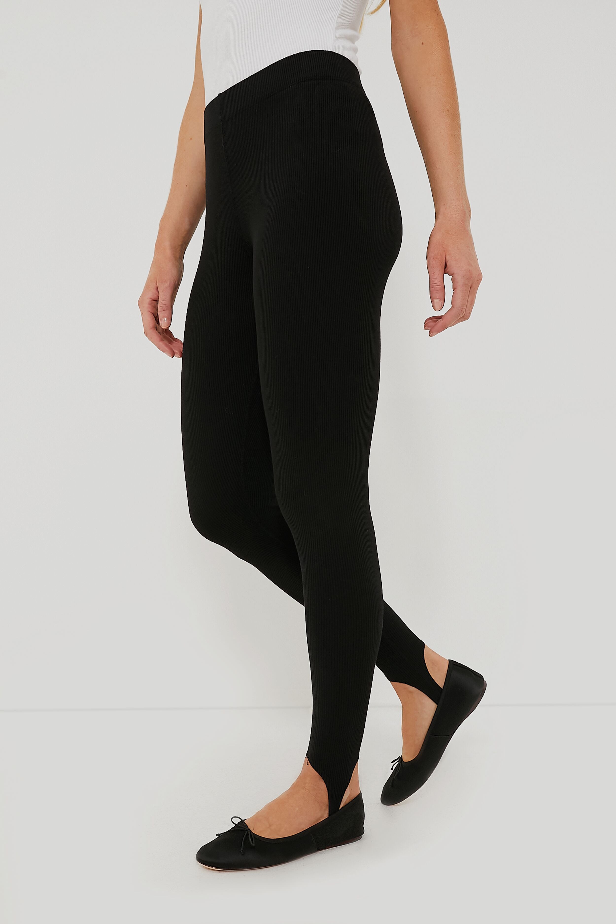 A true classic that keeps things elevated yet comfortable. the Black Rib Leggings are a must-have. Finished with a stirrup hem that adds a touch of vintage style. while also ensuring a secure fit that won't move around awkwardly throughout the day. these are made to be worn with dressier heels. riding boots. or even comfy sneaks for a stylish look!
