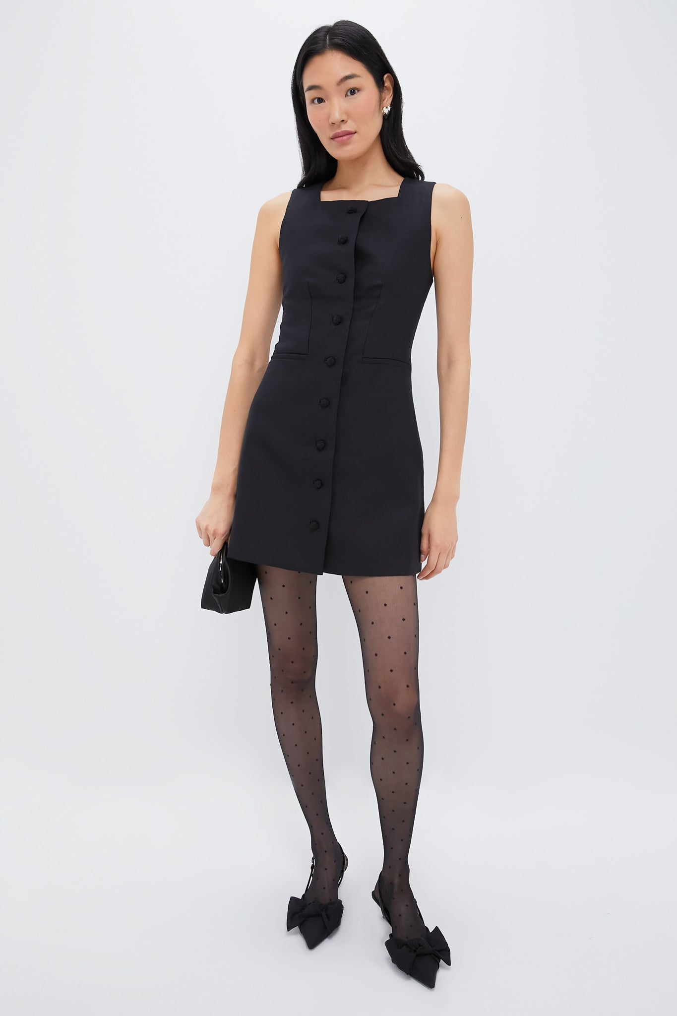 Tailored in 100% mid-weight linen. the Rio Mini Dress features an elegant. high square neckline and fitted silhouette. Self-covered buttons extend down the centre front. while the back turns to reveal a buckle adjustment to tailor the fit. We are styling it with ballet flats and a blazer for the office. or with boots and a cardigan for weekends!