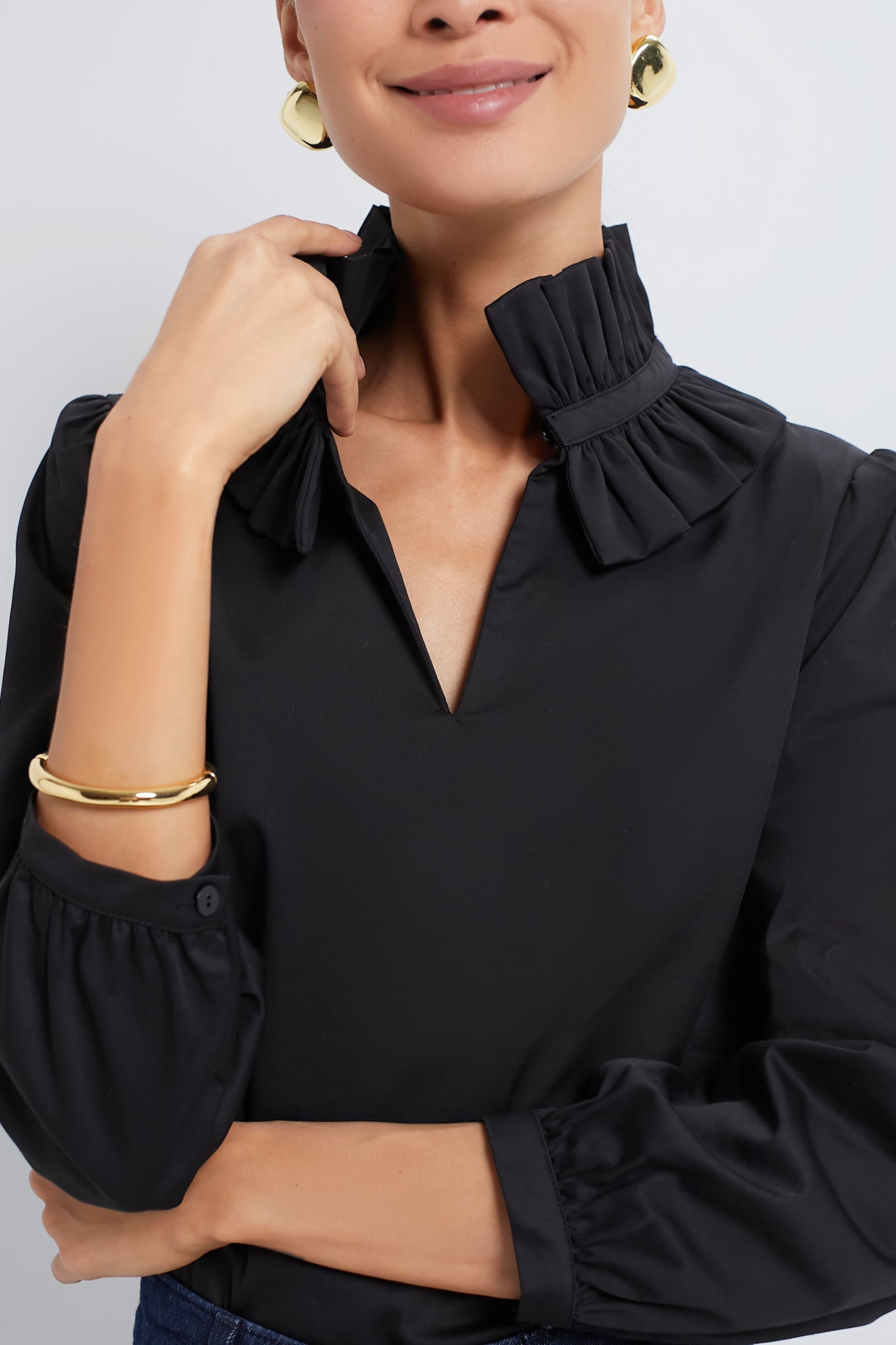- Ruffle stand collar