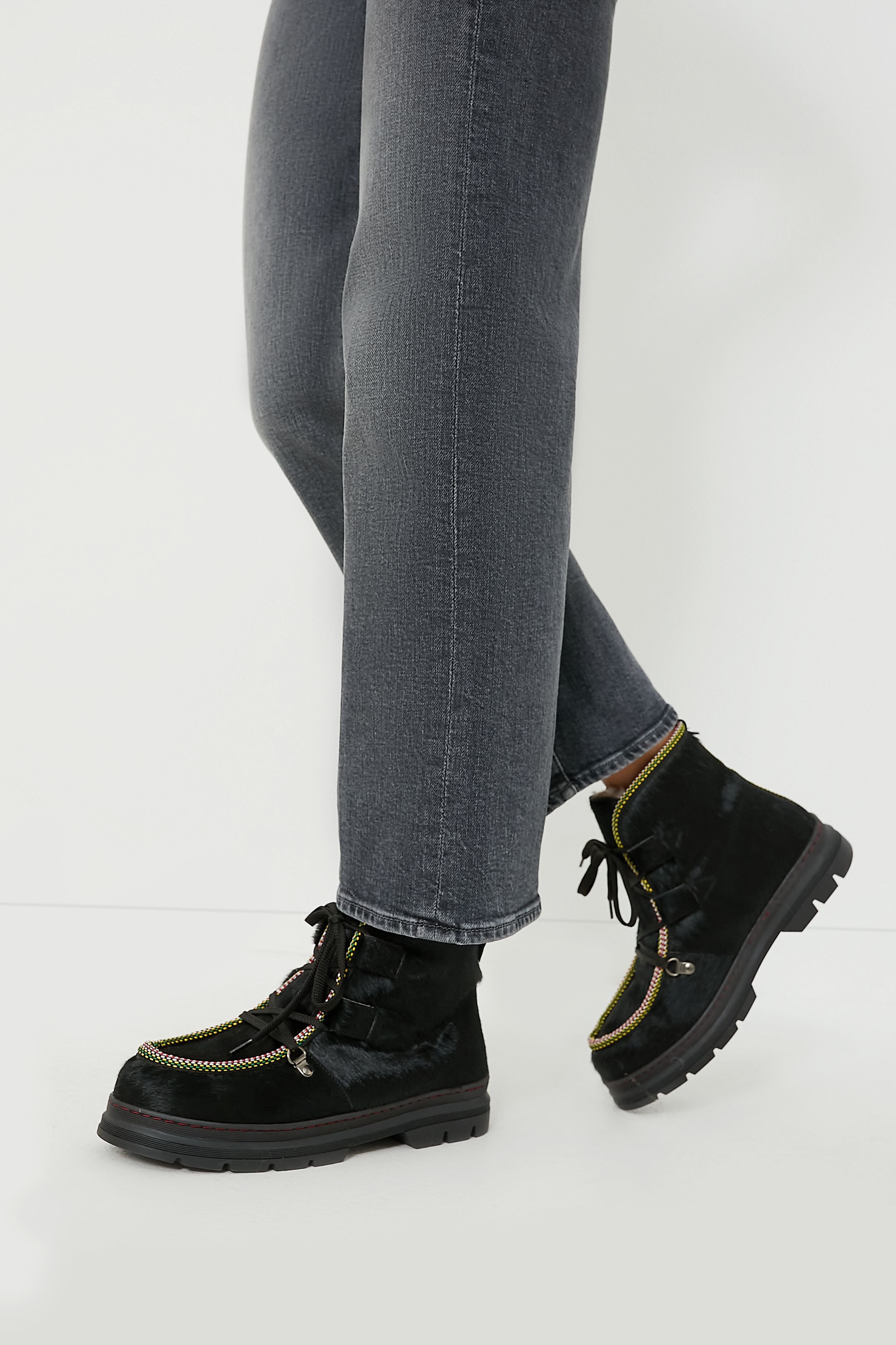 The iconic Black Shearling Lined Incredible Pony Boots becomes the most sought after après ski shoes once the temperature plummets. Aside from being gloriously warm with 100% sheepskin shearling lining. this deluxe ankle boot seamlessly combines fashion with functionality due to its moulded rubber non-slip sole.