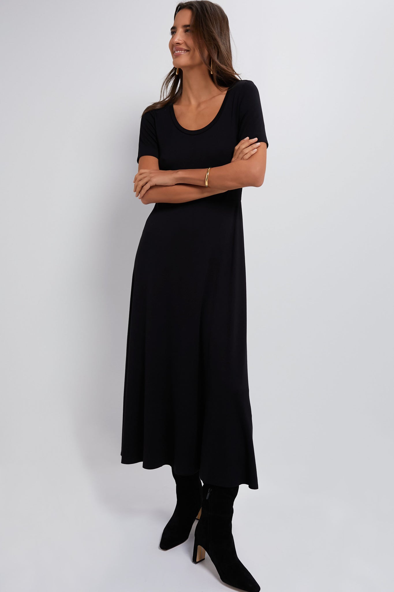 Designed to dress up or down all year long. the Black Sara Maxi is an easy knit dress with long sleeves and a flattering fit-and-flare silhouette. Pair with heels. boots. sneakers. or flats- the options are endless!