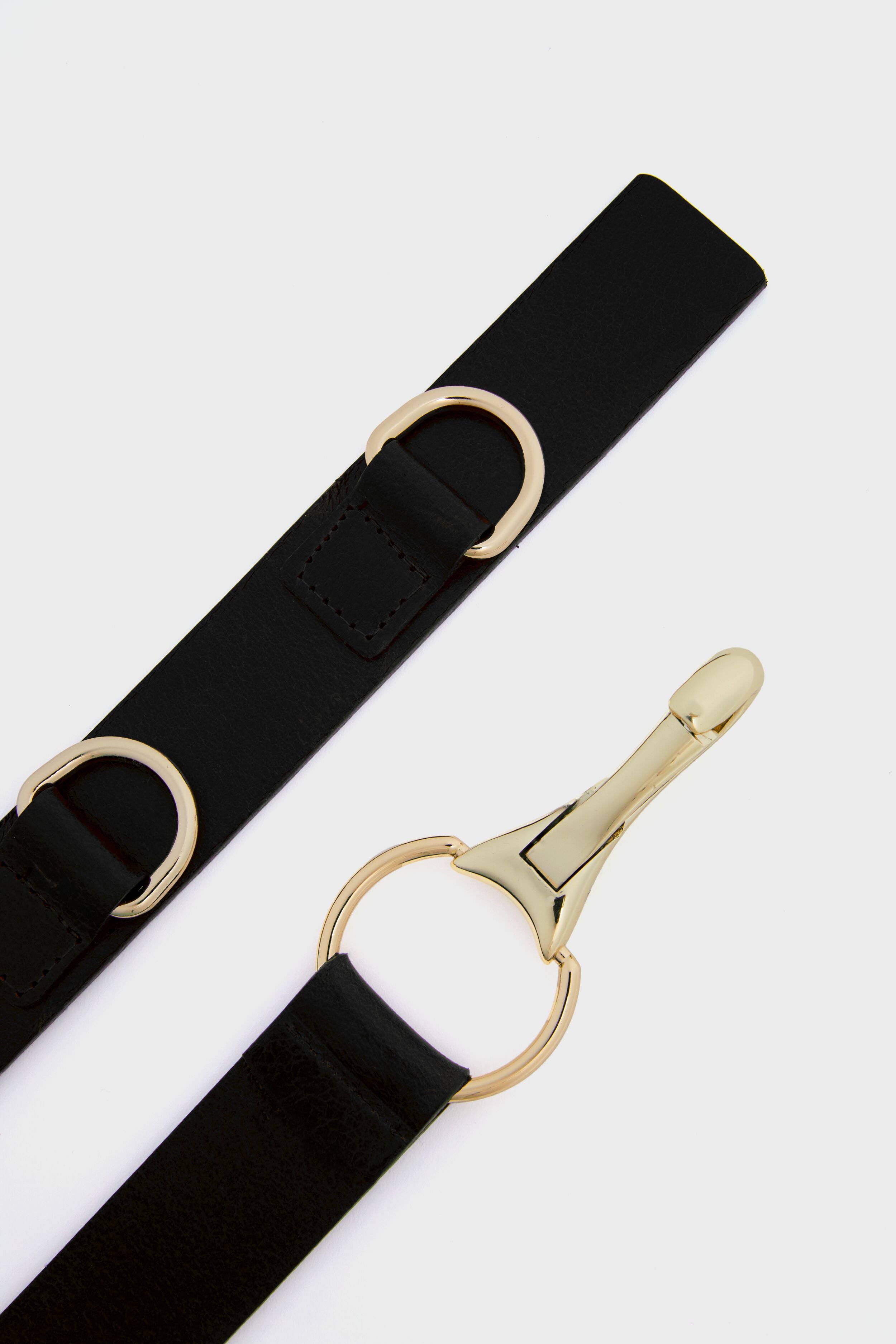 The Black Snaffle Belt is the statement piece your wardrobe needs- the leather and unique gold buckle add a subtle. elegant touch to a classic belt design. Pair with your favorite denim and a tucked in long sleeve for a simple yet put-together look. or wear over a black dress for an added detail.