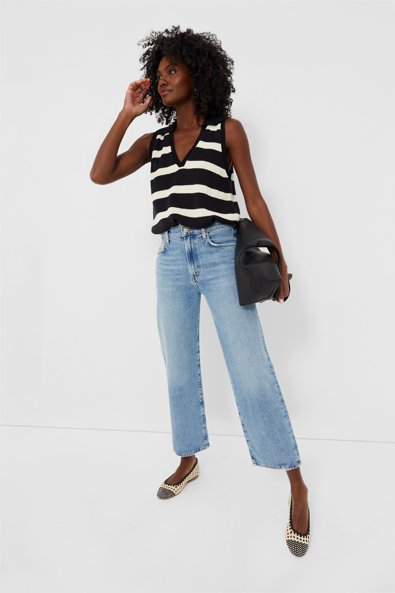 Say hello to your new best friend. The Black Stripe Knit Ada Polo Tank is a chic closet staple. boasting a V-neckline. relaxed knit body. and classic striped pattern. Pair with denim shorts and sneakers. or dress up with a maxi skirt and ballet flats.