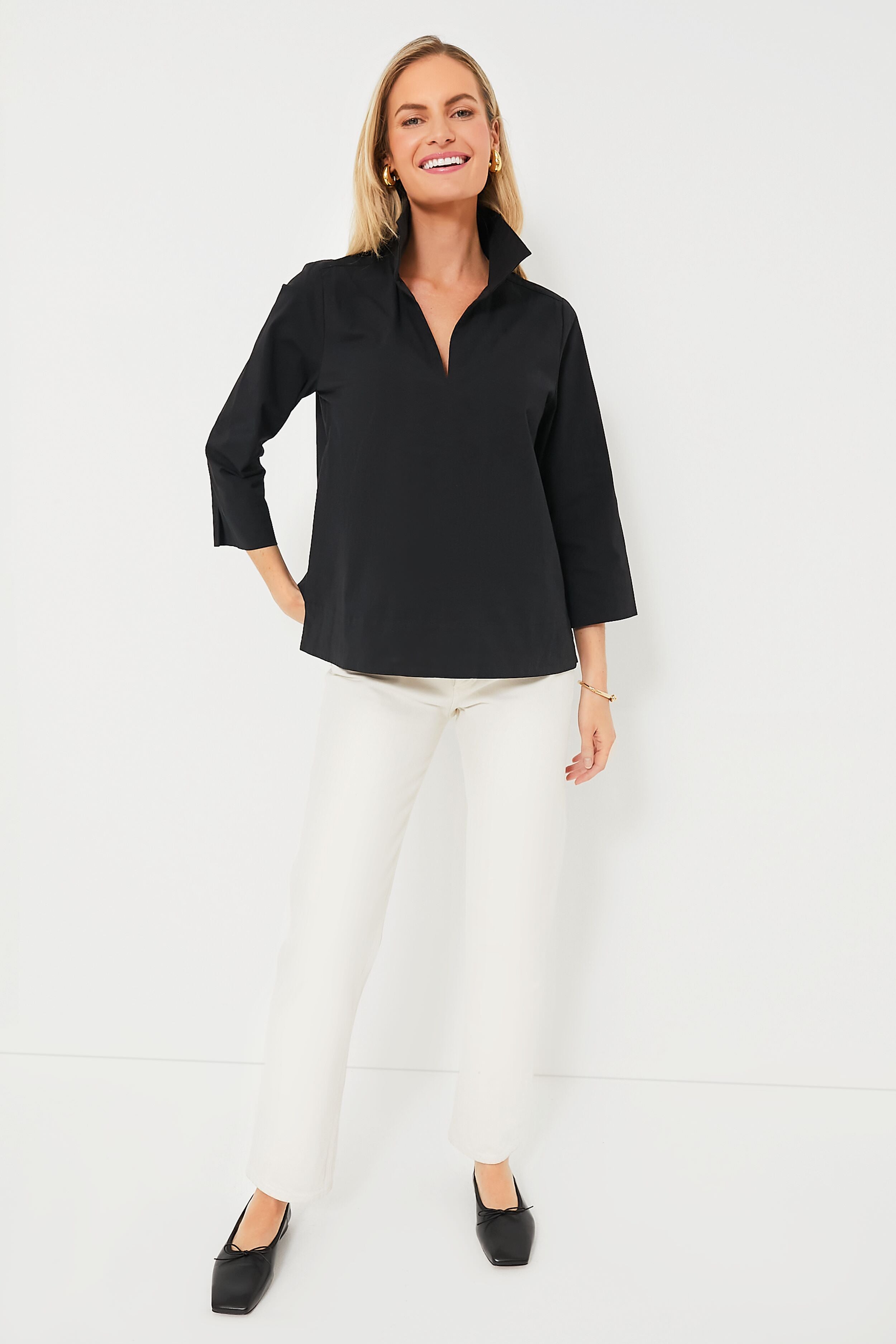 Your staple style gets a fresh update with the Sullivan Blouse. Made from a lightweight and crisp cotton material that provides effortless polish with a classic black colorway that pairs well with all kinds of neutrals. this stand collared shirt is a must-have in any closet. Style it with denim and sneakers for off-duty weekend wear. under a cardigan with boots when the temps drop. or with a sweet skirt and ballet flats for feminine flair.