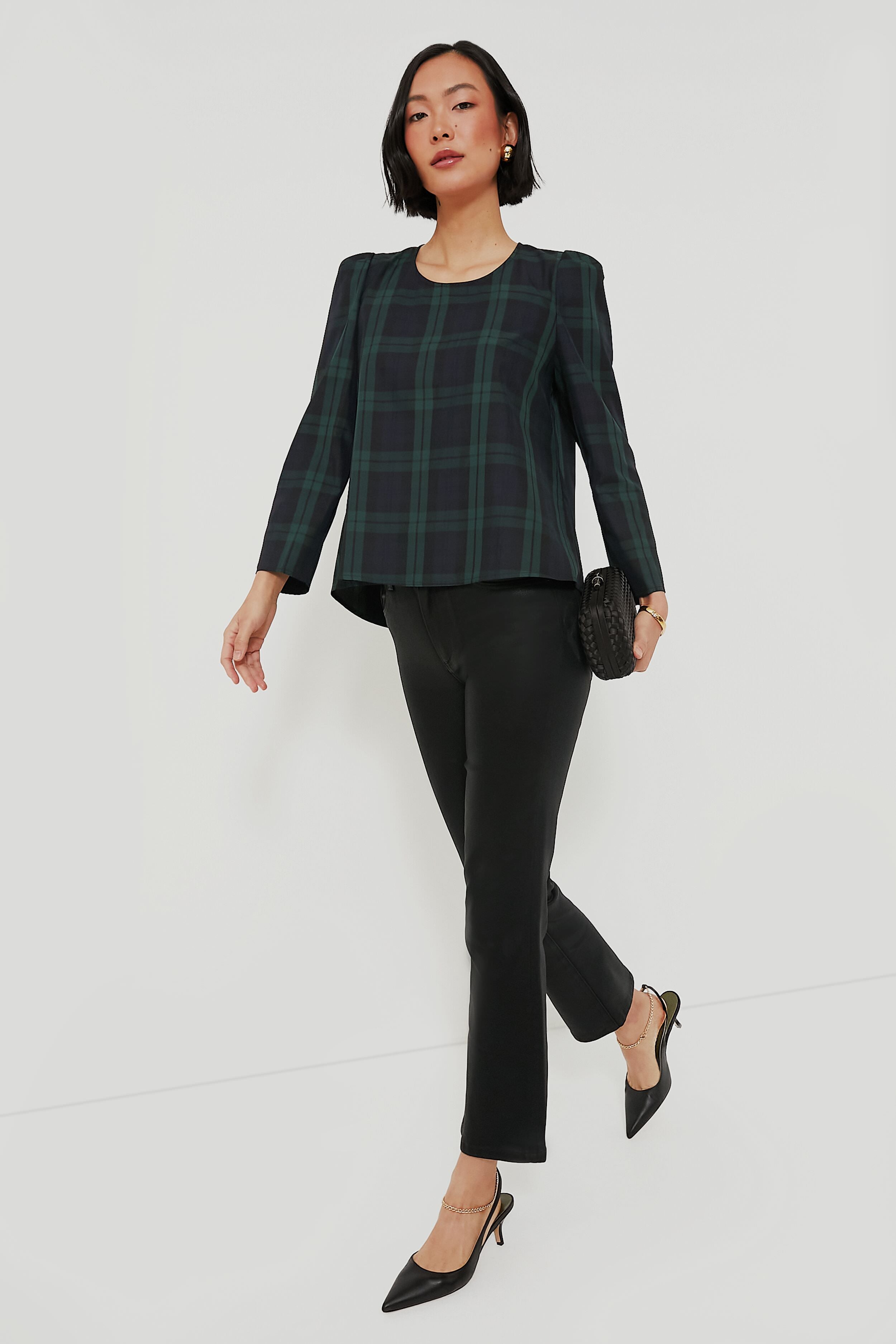 Simple. chic. and classic. the Blackwatch Striped Bedford Top is the wardrobe essential that'll give your closet the festive refresh it needs. With slightly structured shoulders and a high to low hem. this sophisticated number can be tucked in or out depending on your look. Pair with trousers and flats for an lowkey yet elevated look. or opt for leather pants and metallic heels for an effortlessly cool outfit that'll have you ready in 5 minutes flat!