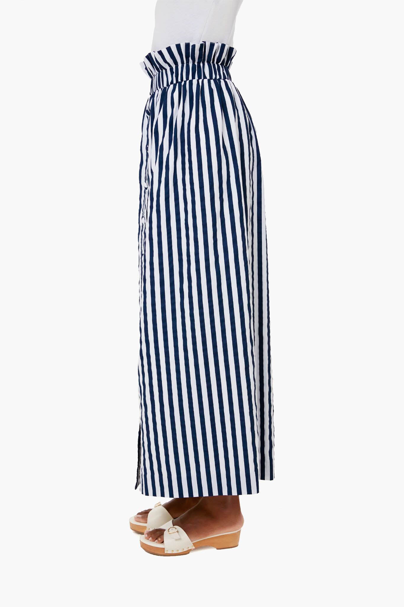 The Sasha Skirt slips on with minimal effort while bringing maximum style.Featuring functional fabric covered buttons with a grosgrain interior so you can unbutton the bottom half for an open look. this pull on. ruffle waistband maxi is a one step elevation to your classic summer wardrobe. Dress it down with an easy white tee and raffia accessories for the farmers market. or elevate it with heeled sandals and gold jewelry for happy hour with friends!