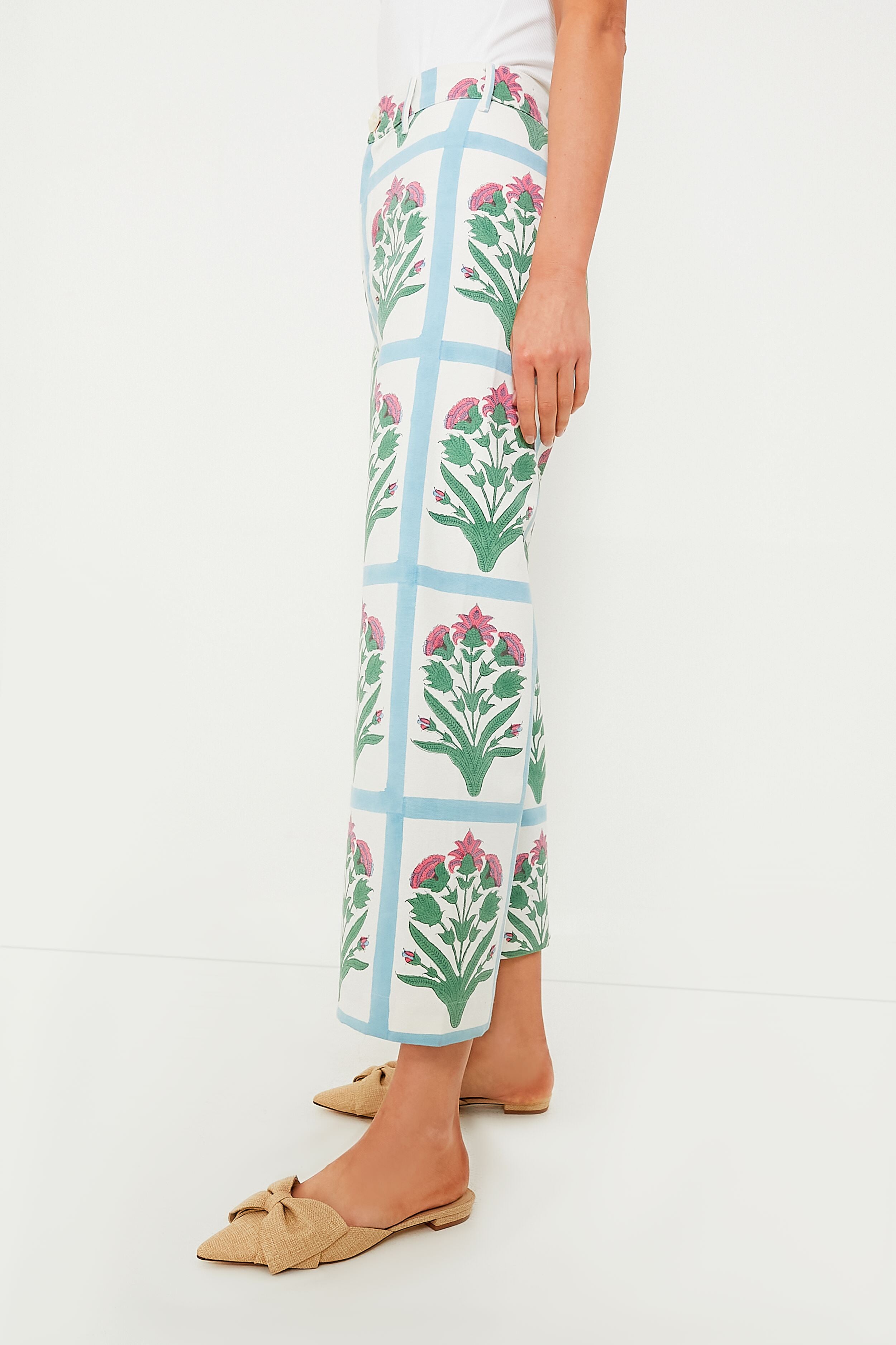 Every wardrobe needs a pair of these! The Bluebell Disco Pant features a high rise. wide leg and slightly cropped silhouette. Crafted from lightweight-but-durable canvas. these hand block printed bottoms are designed to hug you through your waist and hips. Immensely flattering and elongating. dress them down with a basic tee and sandals for a coffee date. or dress them up for dinner and drinks with a silky blouse and wedges!