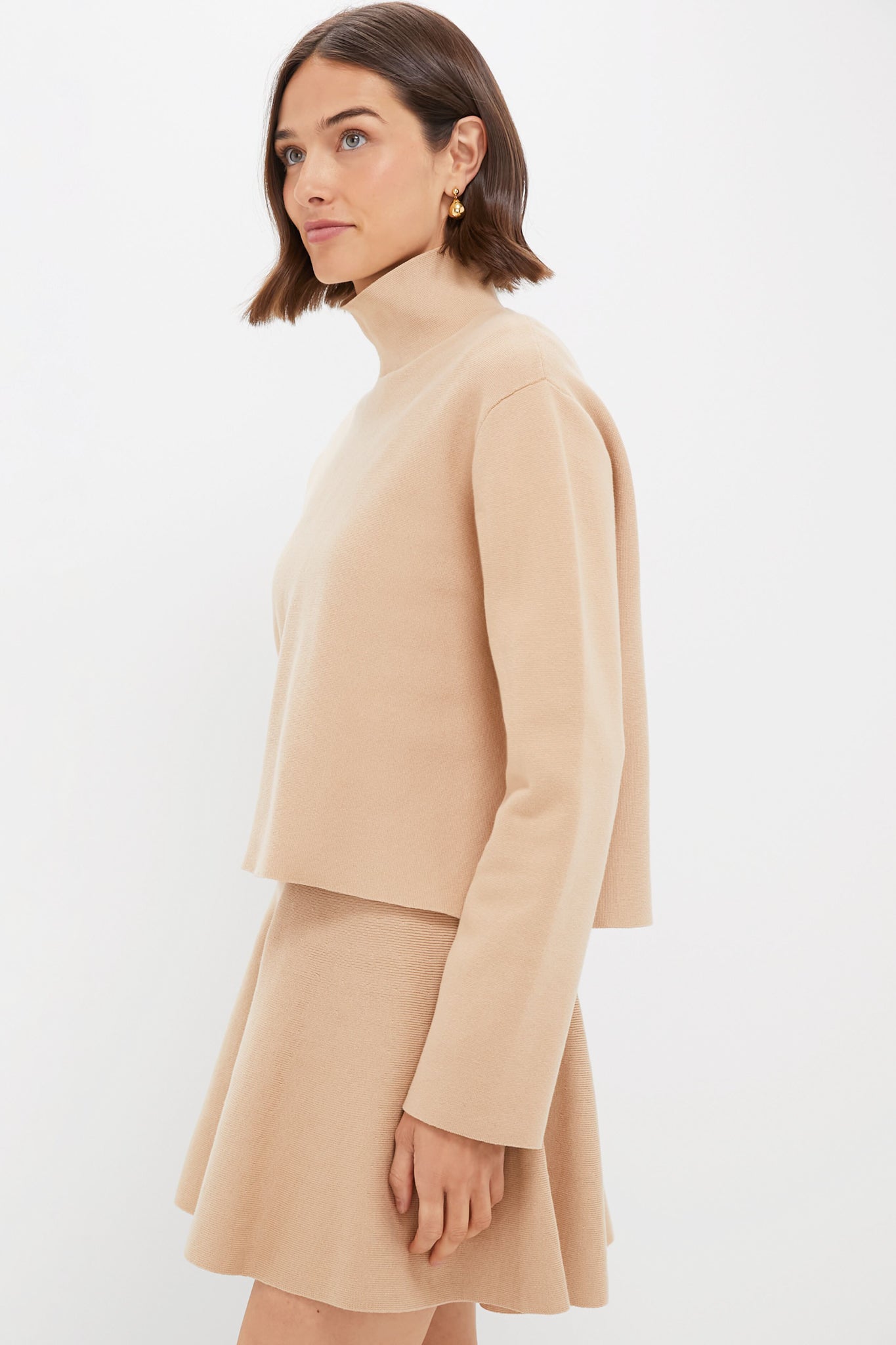 The Camel Knit Kimberly Sweater showcases refined elegance and sophisticated simplicity. Featuring a high neckline. dropped shoulder profile. and a cast-off hemline for a premium finish. Pair this contemporary wardrobe staple with the Camel Knit Cate Skirt for an elevated knit set.