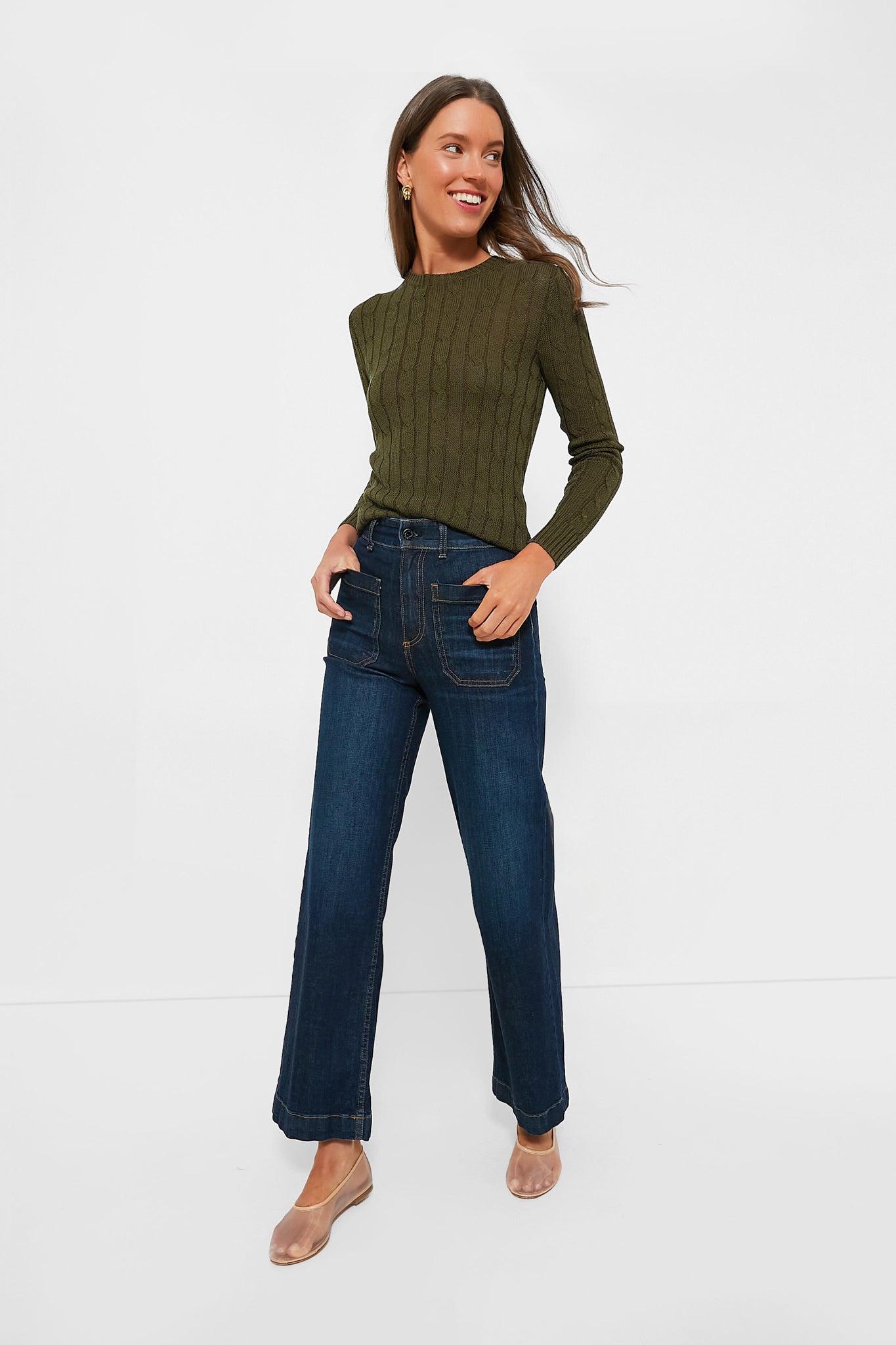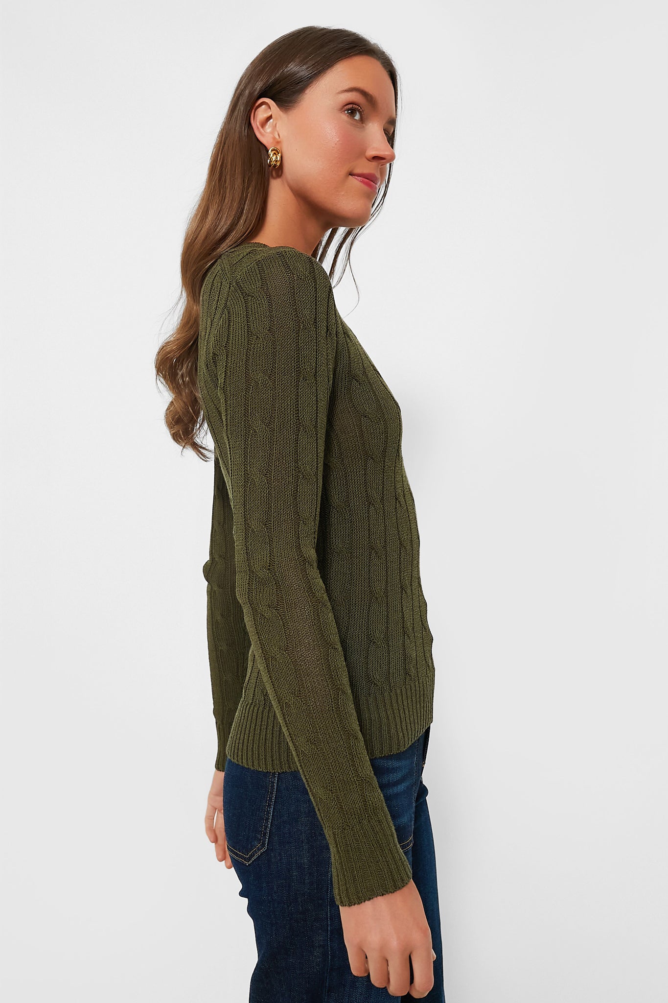 It simply doesn't get more classic than a cable-knit crewneck. The Canopy Olive Pullover is a classic season-spanning layer that is sure to live in your closet for years to come. Made of combed cotton-blend yarn for a slim silhouette. this sweater looks perfect no matter how you style it — layer it over a button down or a dress. pair it with denim or a mini skirt. throw it over your shoulders. add a blazer over the top... need we say more?