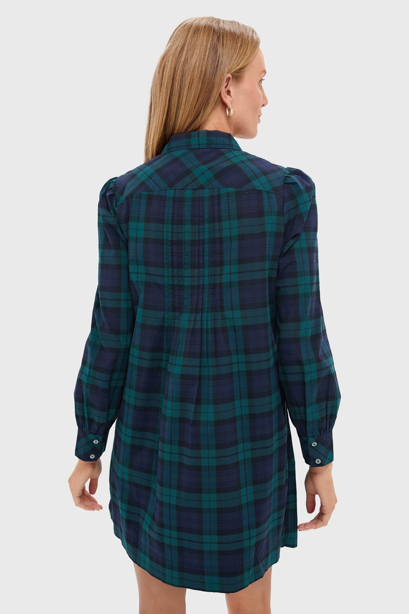 The Popover Dress features an ultra-flattering silhouette in a festive pattern making it the perfect pick for your holiday plans. With a pin-tuck detailing and button cuffed sleeves. we chose to pair this dress with a mary-jane flat and a handbag for a polished look.
