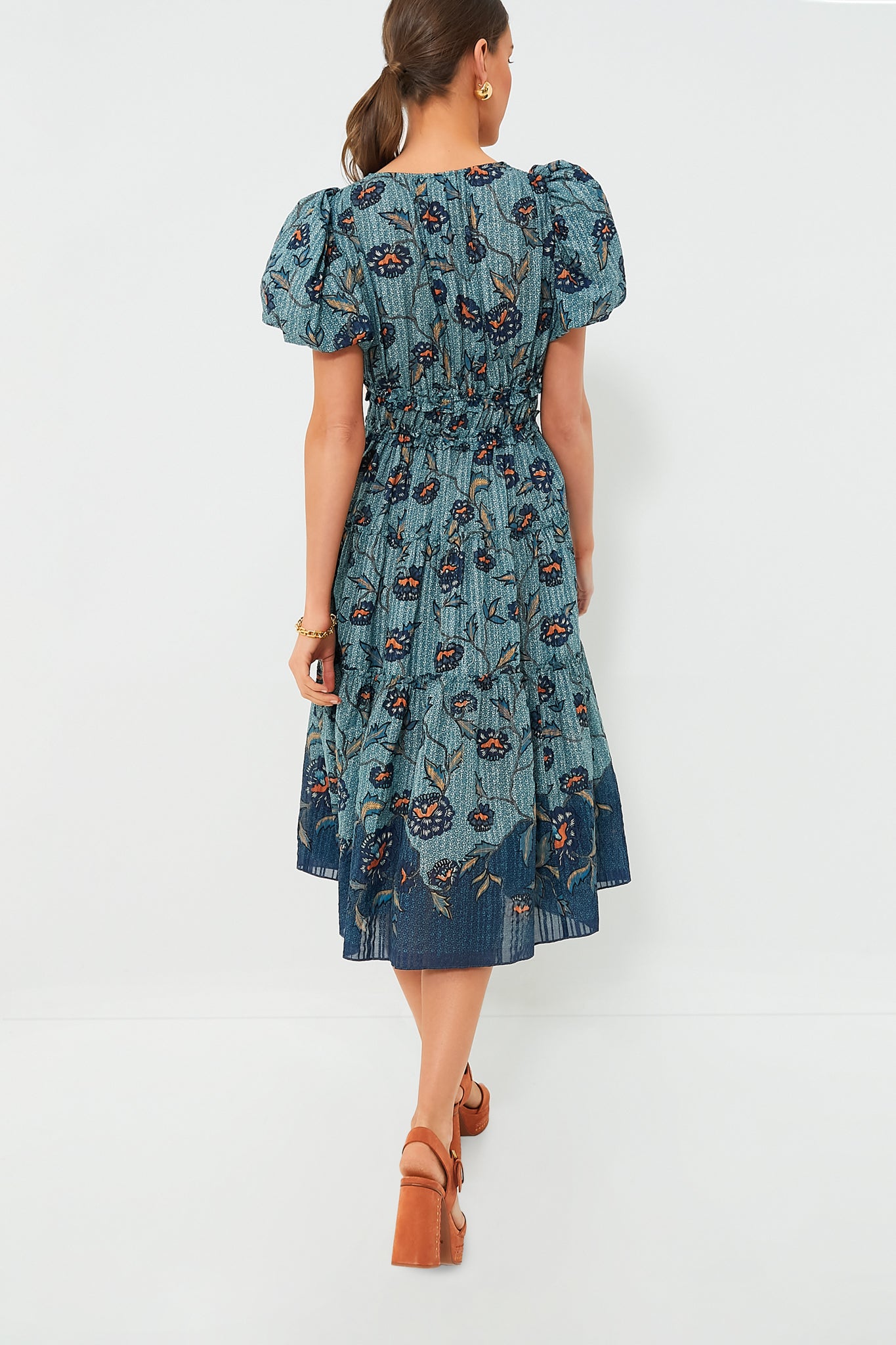 Crafted from a beautiful cotton-silk blend and decorated with vintage-inspired batik florals. the Cornflower Eloisa Dress is all kinds of stunning. With fabulously feminine puffed sleeves. a V-neckline that's begging to be accessorized with some shiny jewelry. and a floaty tiered skirt. this midi is the epitome of elegance. Pair it with sandals and sunnies for Sunday brunch. or with wedges and a clutch for sunset cocktails by the water!