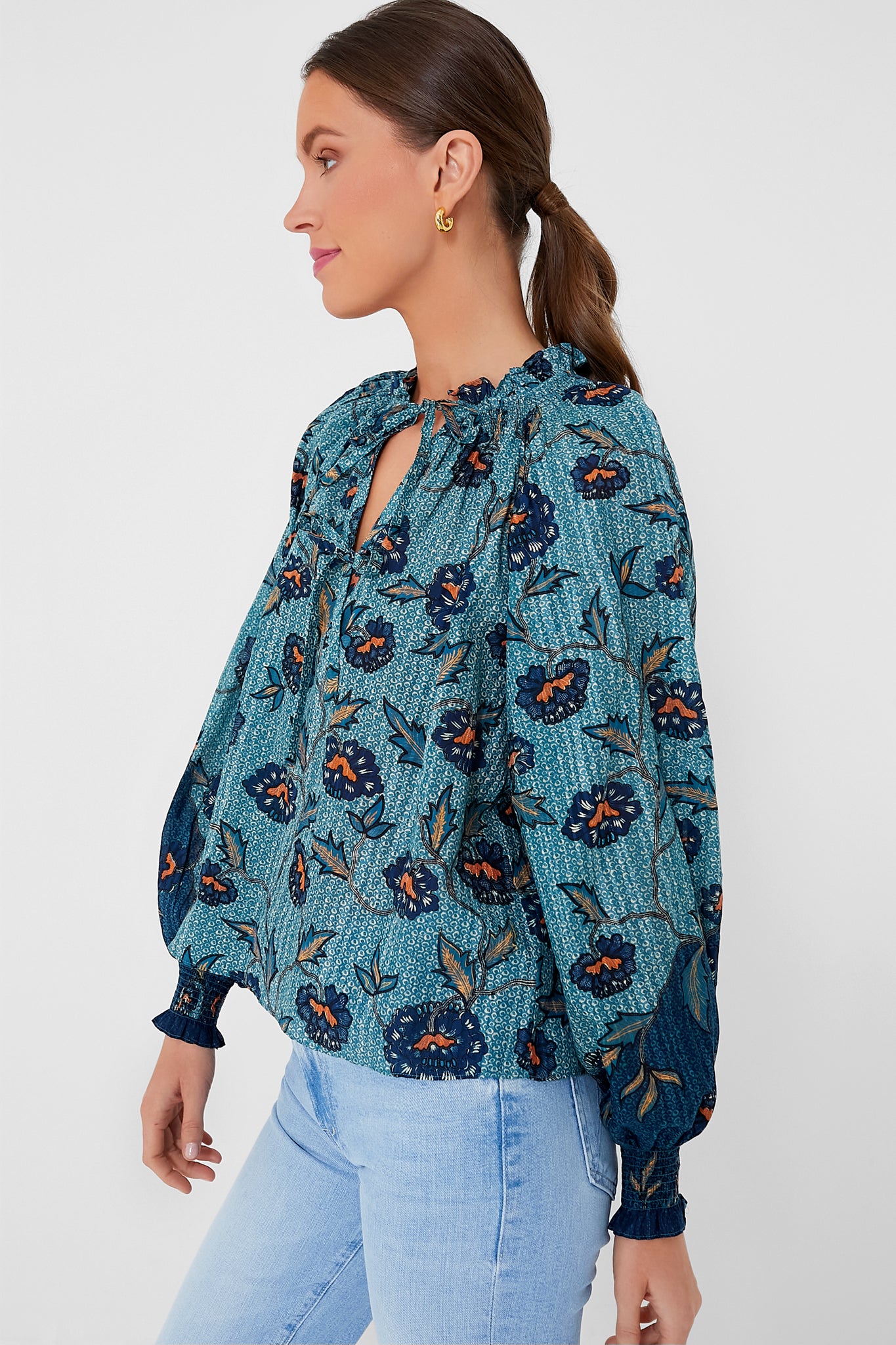 Boho-chic has never looked better than the Cornflower Kaitlyn Blouse. Made from a luxe cotton-viscose blend that is soft yet breezy. and adorned with breathtaking blue botanicals. this relaxed top is sure to wow. Complete with voluminous sleeves and neckties you can fasten or leave undone for a slightly sultry touch. this is a wardrobe winner when paired with denim. shorts. and more.