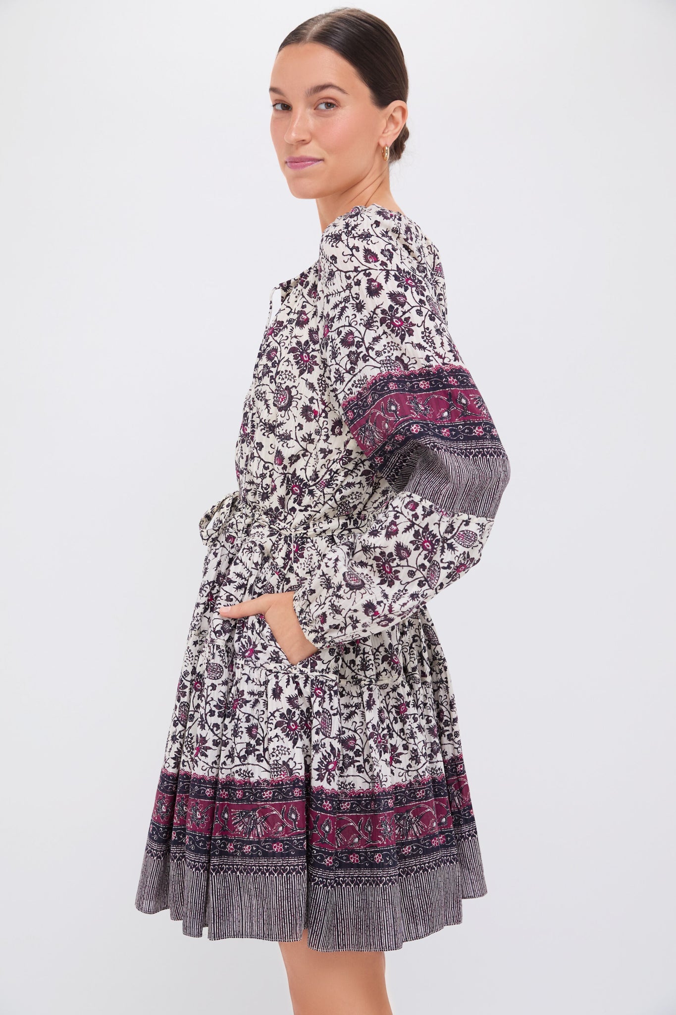 The Cosmos Abri Dress is the perfect style for days where you want low effort. high reward. With a flattering tiered body. long balloon sleeves. and a self-tie neckline. this slipover style will pair perfectly with ballet flats. sandals. or boots!
