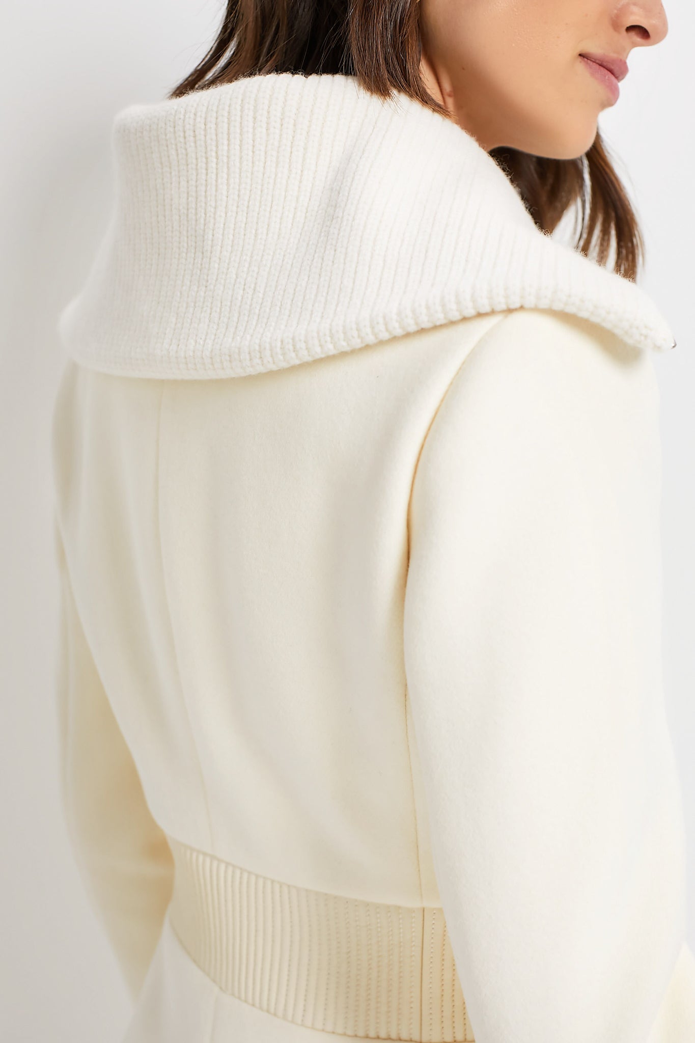 Crafted from warm double-face wool. the Cream Clarice Coat features soft ribbed collar and cuffs fashioned with leather smocked detail offering a flattering fit. Wear this chic outerwear on chilly. snowy days and remain just as fashionable as ever.
